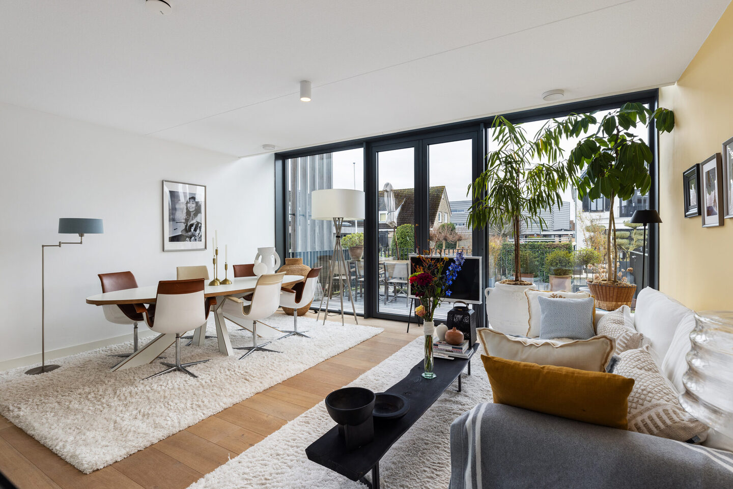 Via een taatsdeur is de woonkamer te bereiken. Hier ligt een prachtige eiken vloer en de dubbele deuren trekken je direct naar het terras. Hier is het goed vertoeven en kun je een sloep aanmeren.