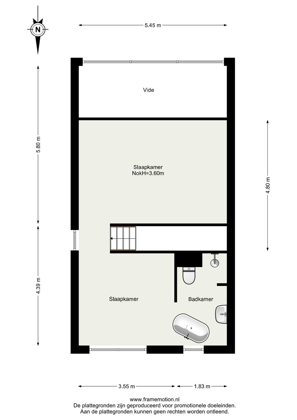 Vanuit de woonkamer is via een fraaie trap de vide te bereiken, thans ingericht als tv hoek maar uiteraard multifunctioneel. De vide heeft een open verbinding met de woonkamer. Op deze verdieping bevindt zich de hoofdslaapkamer met ensuite badkamer. In deze badkamer is een ligbad te vinden evenals een inloopdouche, een hangend toilet en een meubel met wastafel. Ook op deze verdieping ligt een eiken vloer m.u.v. de badkamer.