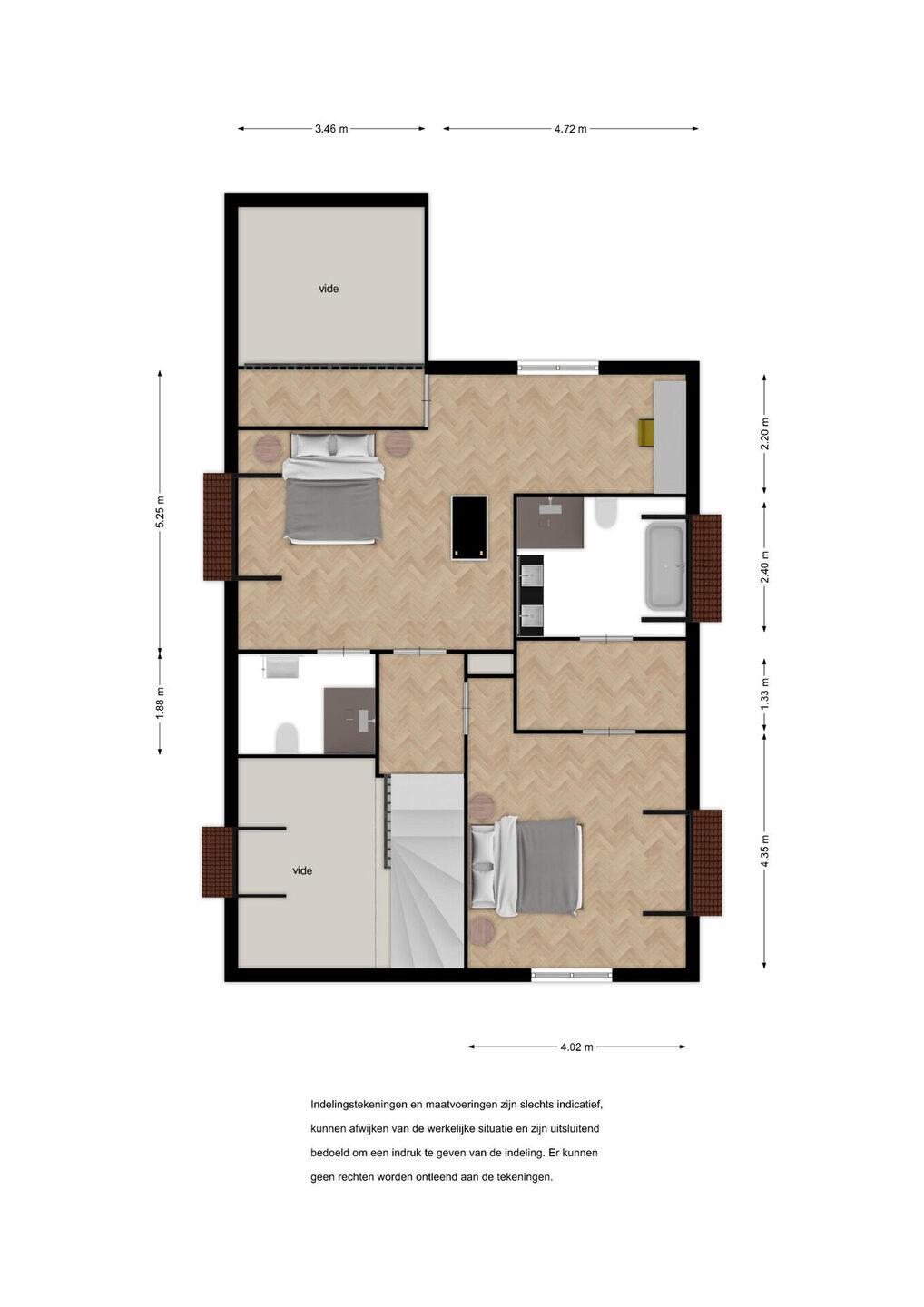 De overloop geeft toegang tot twee ruime slaapkamers, beide met een eigen badkamer.