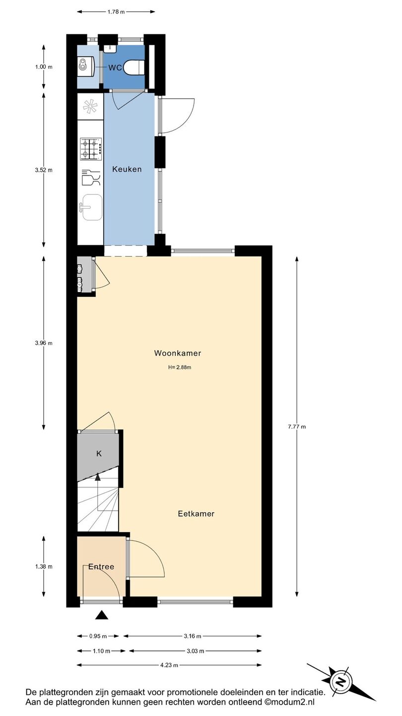 Via de entree komt u in de ruime en lichte woonkamer. Dankzij de twee grote raampartijen aan weerszijden van de woonkamer geniet de woning van veel natuurlijke lichtinval. In de woonkamer bevinden zich tevens de meterkast en de trapopgang naar de eerste verdieping.