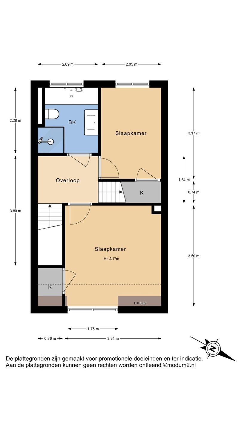 Zie de (interactieve) plattegronden voor de afmetingen van de woning.