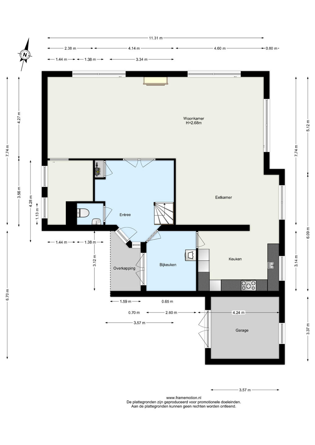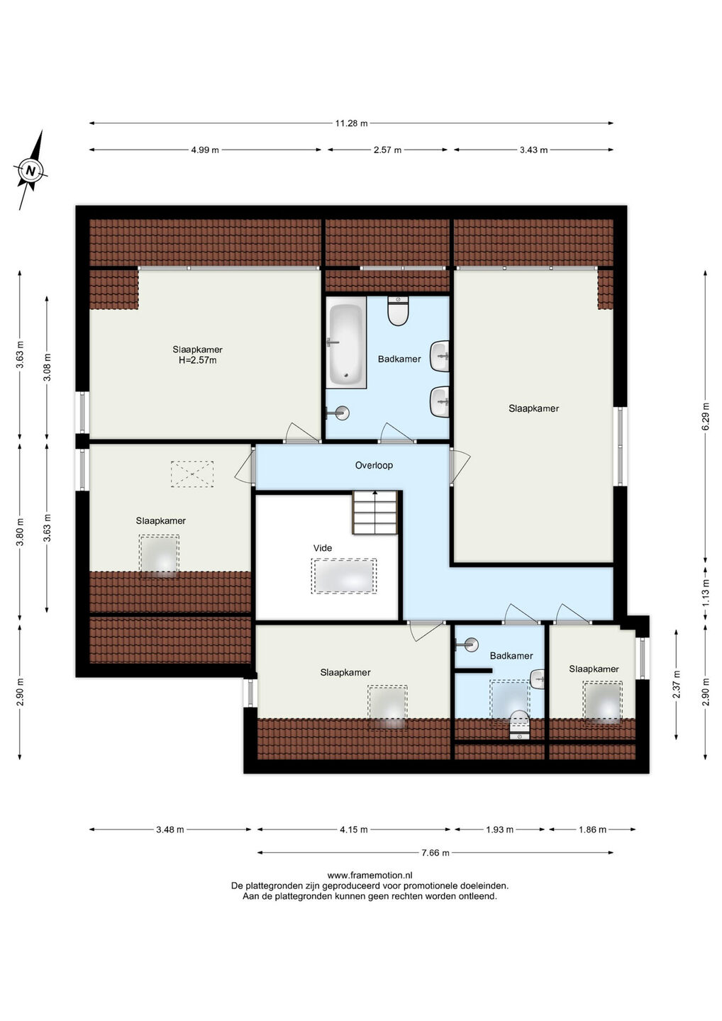 Zie de (interactieve) plattegronden voor de afmetingen van de woning.