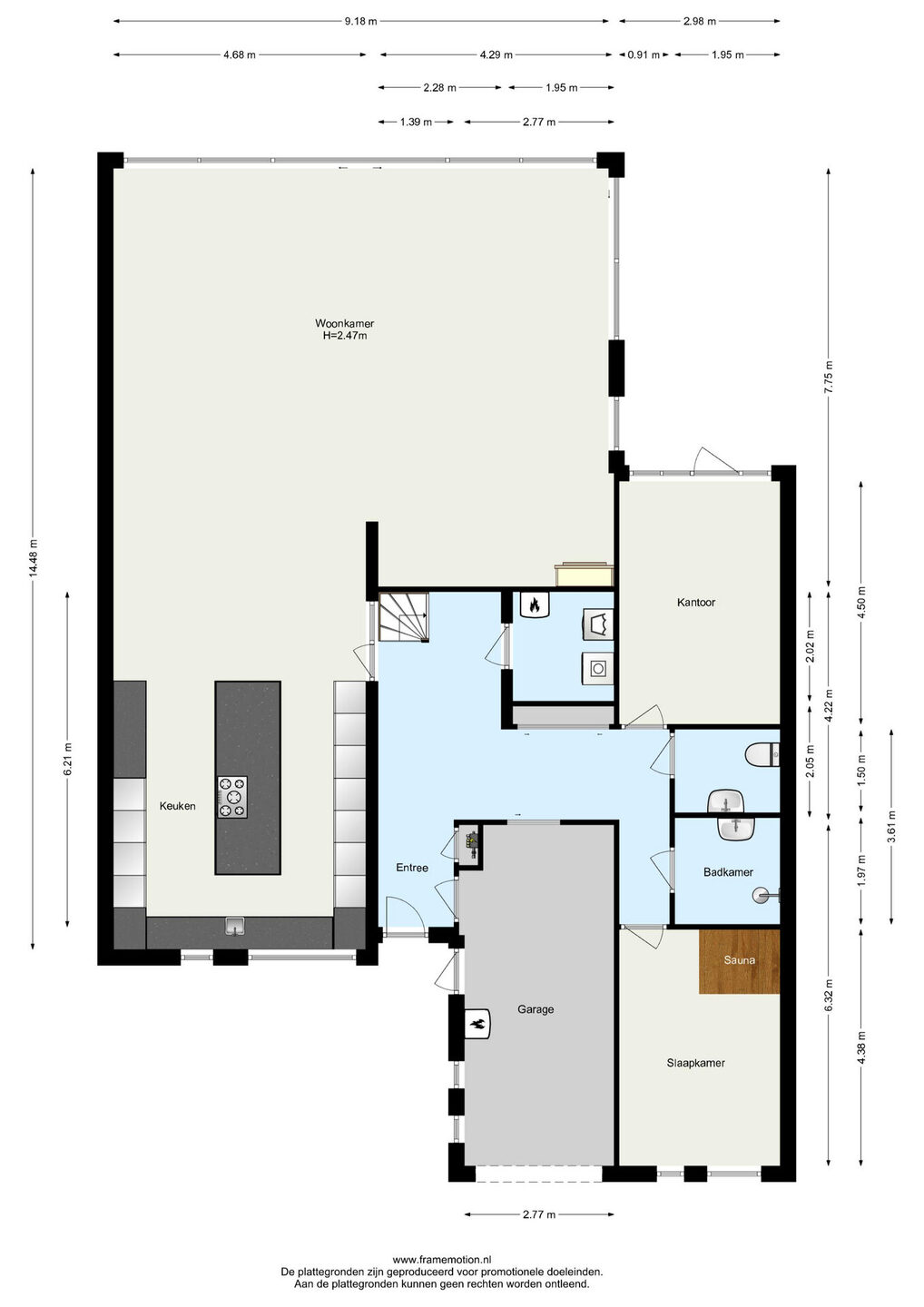 De inpandige garage (18 m²) heeft een elektrische roldeur en directe toegang vanuit de woning.