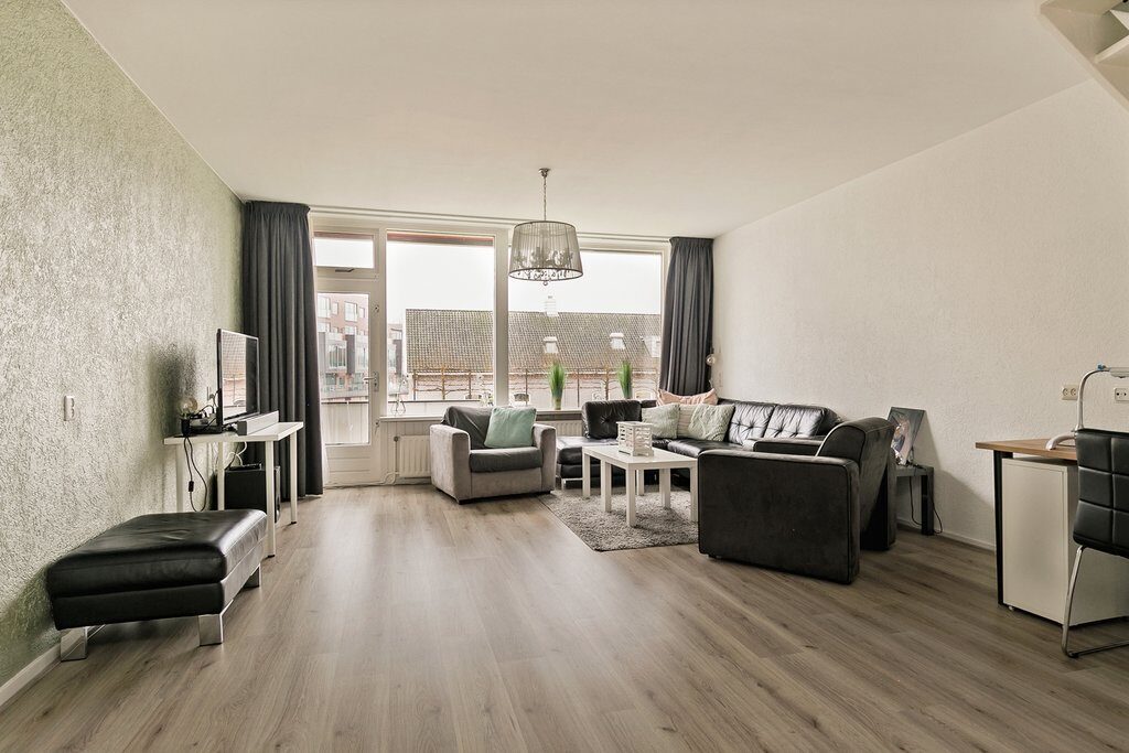 Woonkamer met vrij uitzicht en een balkon (zuidoosten) met zonwering.