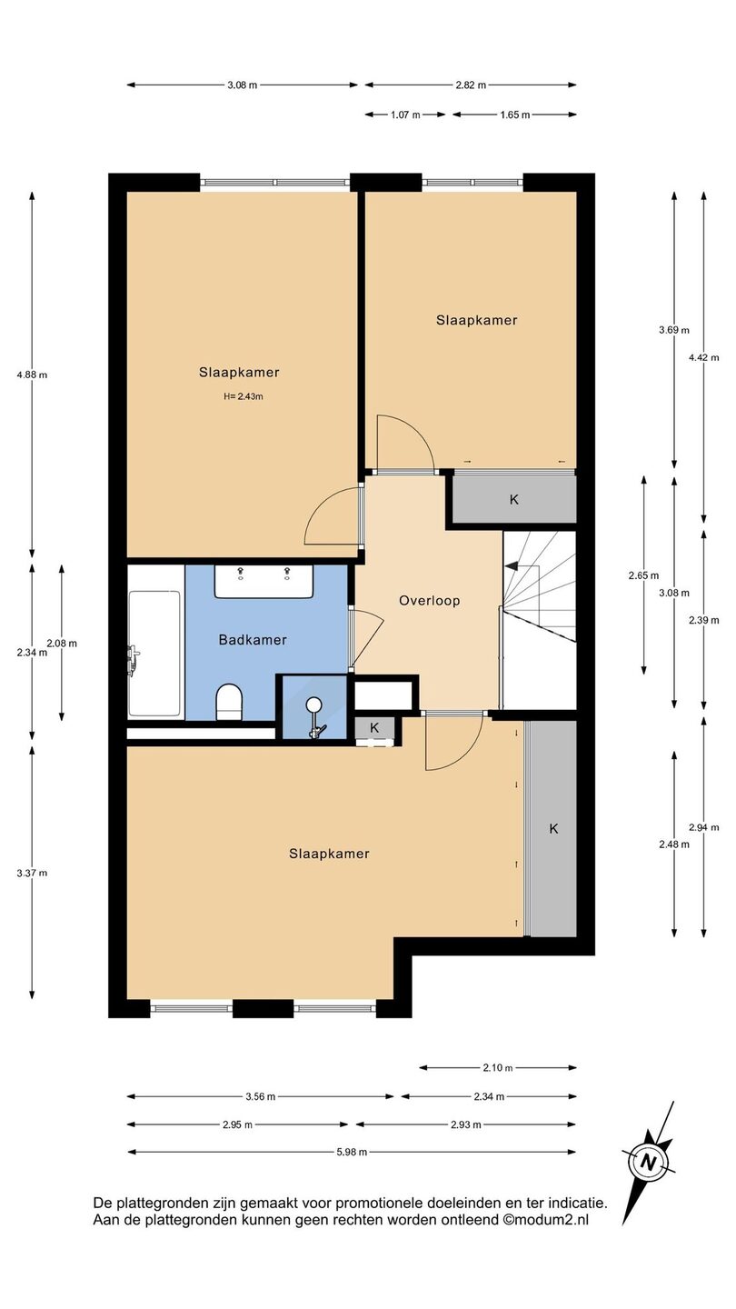 De tweede verdieping is bereikbaar via een vaste trap. Hier bevinden zich drie slaapkamers en een badkamer. De grote slaapkamer aan de voorzijde van de woning is voorzien van een maatwerk inbouwkast. Via de overloop kom je in de moderne badkamer, uitgerust met een ligbad, douche, dubbel wastafelmeubel en toilet. De overige slaapkamers liggen aan de achterzijde van de woning. De gehele tweede verdieping is voorzien van elektrische rolluiken.