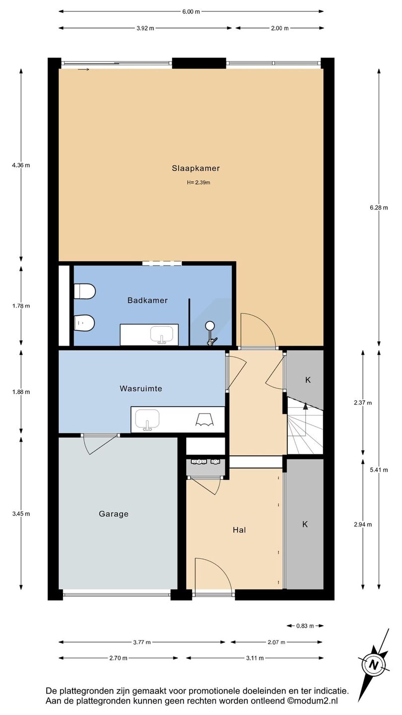 Hal met meterkast en vaste kastenwand. Vanuit hier zijn de garage en de multifunctionele wasruimte te bereiken. Via de gang kom je bij de trap en de deur naar de grote slaapkamer, gelegen aan de achterzijde. Deze slaapkamer beschikt over een ensuite badkamer met inloopdouche, toilet en wastafel met meubel. Het toilet is tevens voorzien van een bidet. De slaapkamer heeft een grote raampartij en een schuifpui richting de tuin. De strak aangelegde tuin ligt op het zuidoosten en beschikt over een vlonder aan het water.