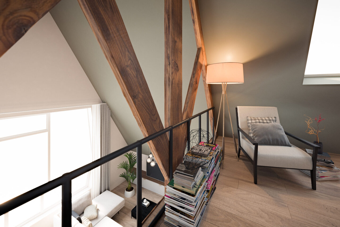 Dit appartement beschikt over een slaapkamer met badkamer ensuite. Daarnaast is er op de vide een studeer/logeerkamer te creëren.