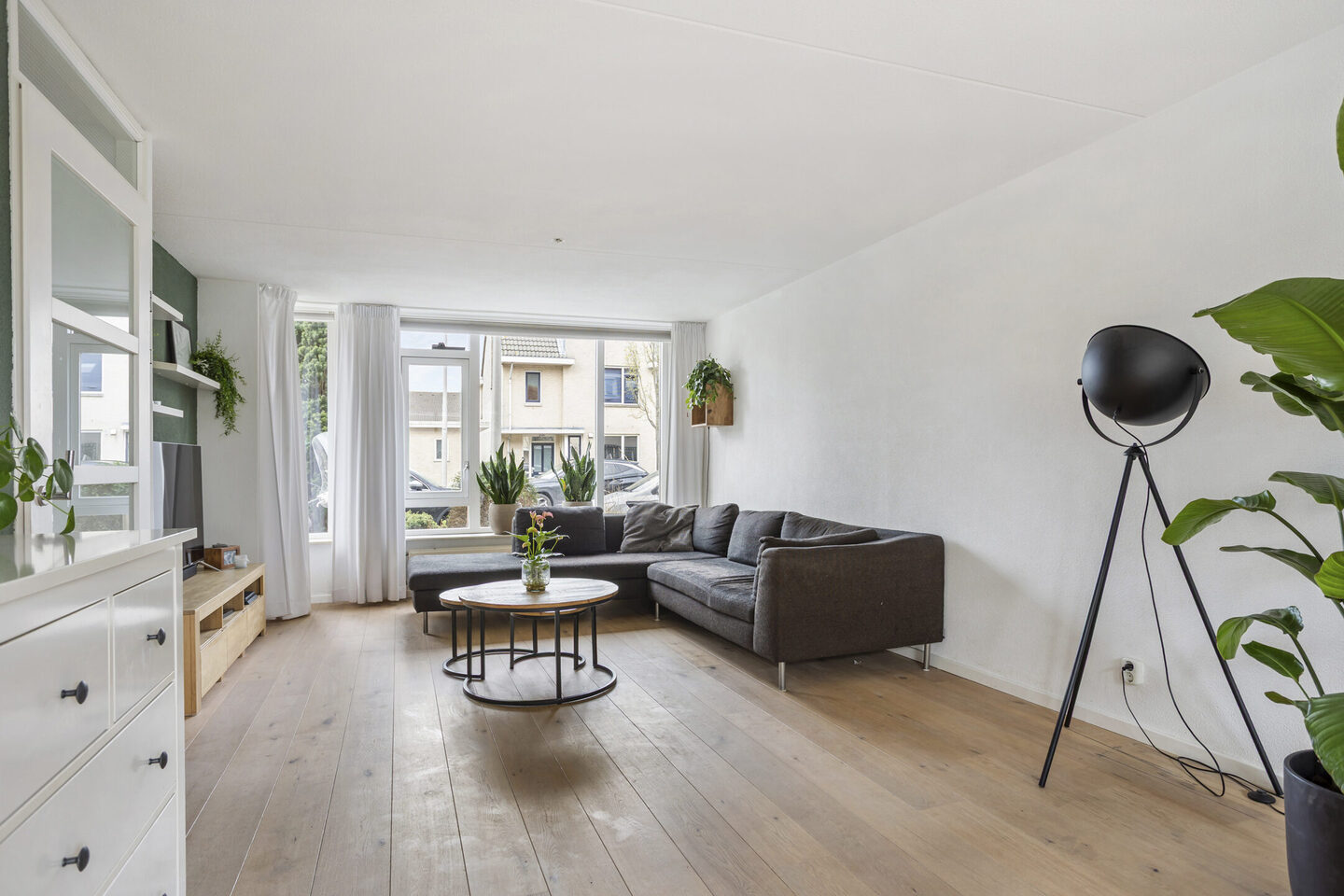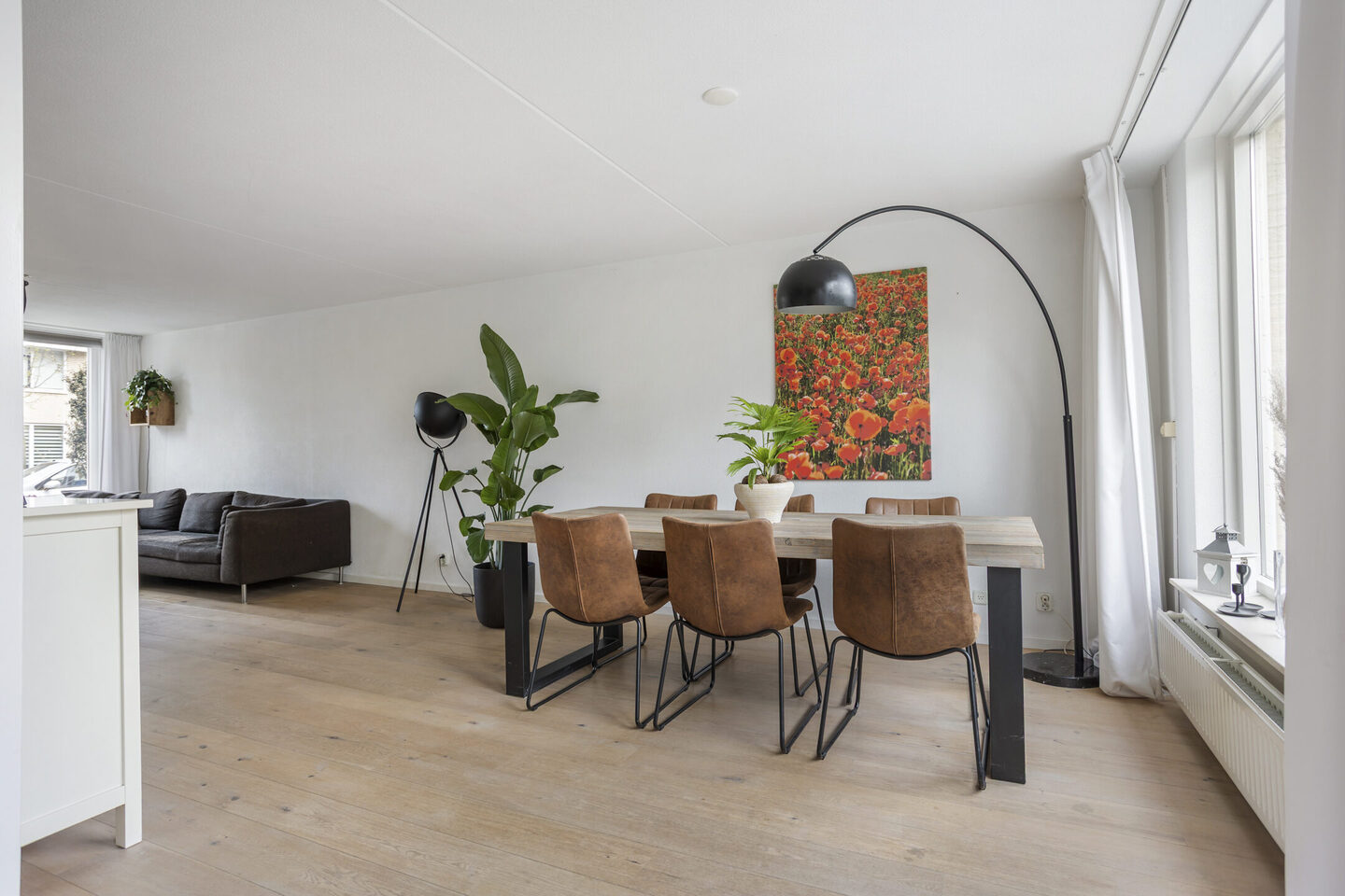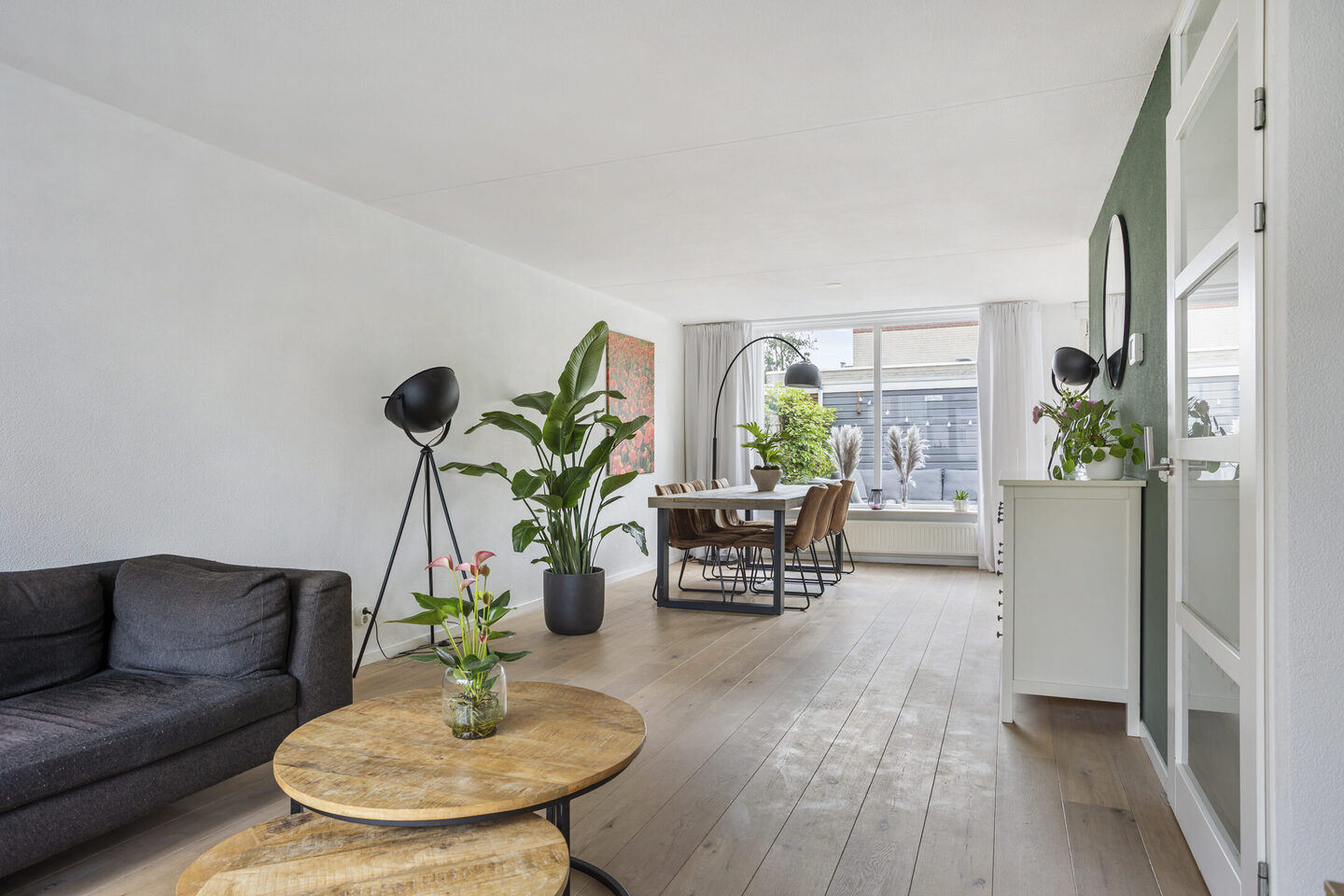De gehele begane grond is afgewerkt met een prachtige houten vloer, wat zorgt voor een warme en sfeervolle uitstraling.