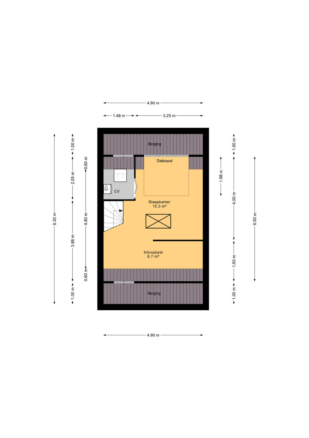 De tweede verdieping is een verrassend ruime open etage met een dakkapel aan de achterzijde. Deze verdieping wordt nu gebruikt als slaapkamer met inloopkast, maar je kunt de ruimte natuurlijk helemaal naar eigen wens indelen. Denk aan een werkplek, hobbykamer of logeerruimte. De nette afwerking met spotverlichting maakt het geheel compleet.