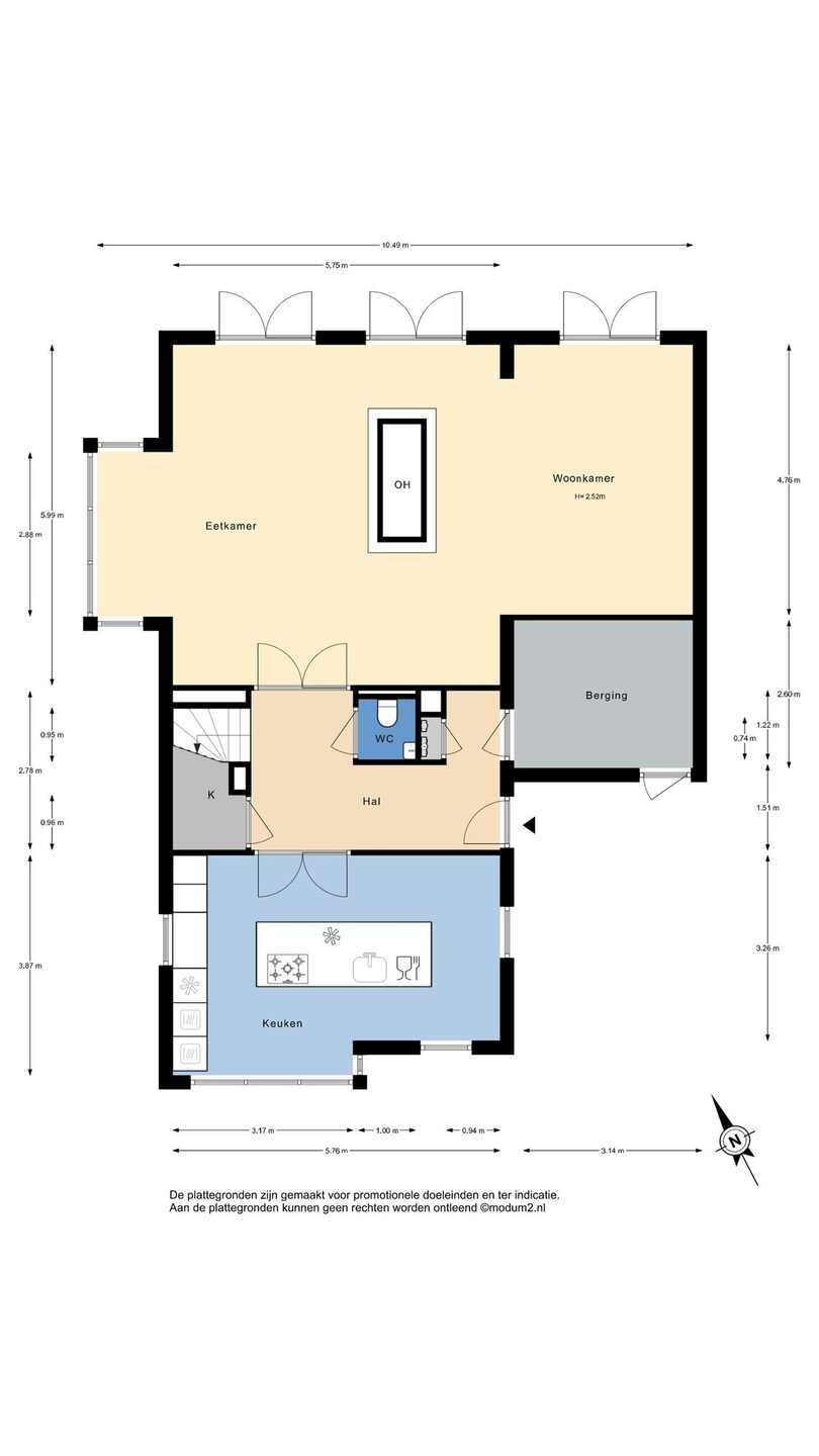 Via de entree kom je in de ruime hal met meterkast (gasloos uitgevoerd), trapopgang en praktische trapkast. Het moderne toilet is voorzien van een hangend closet en fonteintje. Vanuit de hal is er toegang tot de berging met tegelvloer, ideaal voor extra opslag of te gebruiken als kantoor/praktijkruimte.