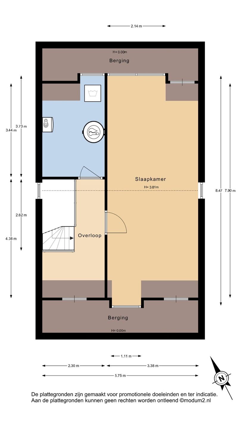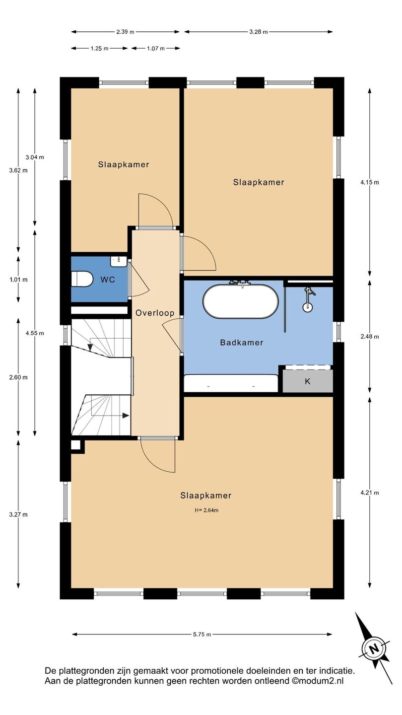 De tweede verdieping is verrassend ruim met een oppervlakte van circa 37 m² (6,45 x 5,75 meter). Op de overloop bevindt zich de technische ruimte met warmtepomp, boiler, WTW-installatie, wasmachineaansluiting en omvormer voor de zonnepanelen.