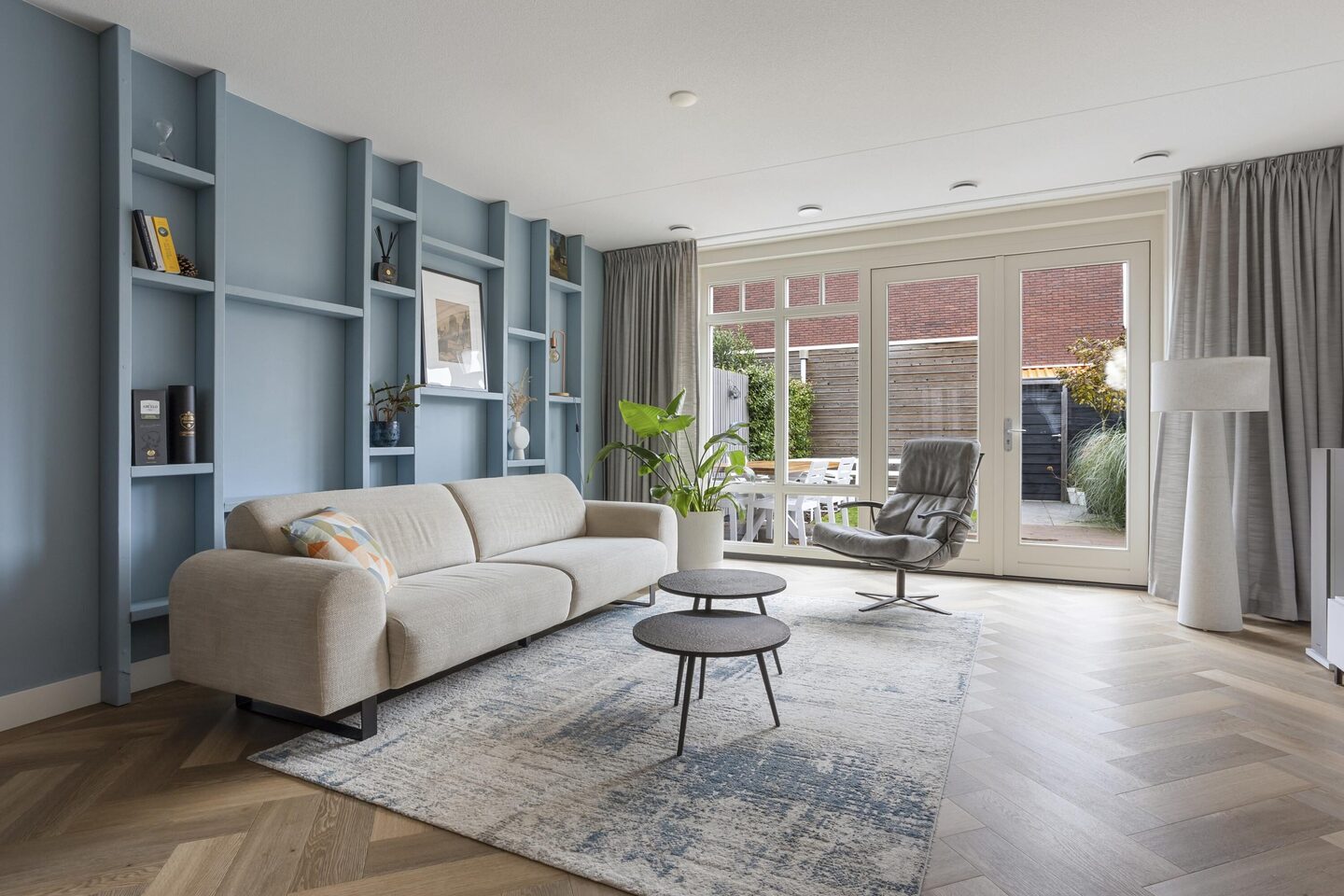 Vanuit de hal betreedt u de uitgebouwde woonkamer welke is voorzien van een fraaie PVC-vloer met bies. De kamerhoge raampartij aan de achterzijde van de woning voorziet de woonkamer van veel daglicht. De dubbele deuren bieden toegang tot de fijne achtertuin welke is voorzien van een vrijstaande houten berging en een achterom.
