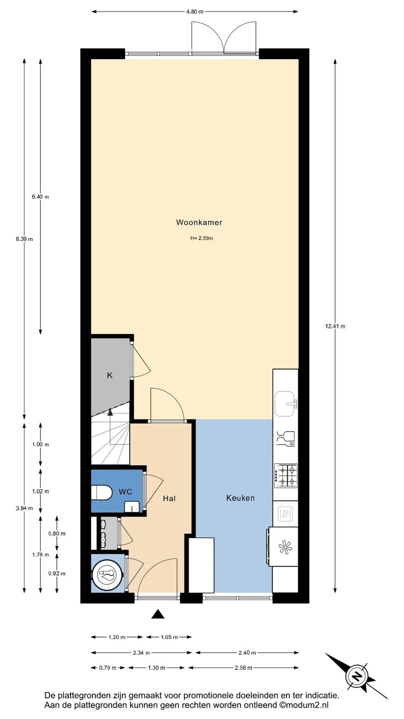 Zie de (interactieve) plattegronden voor de afmetingen van de woning.
