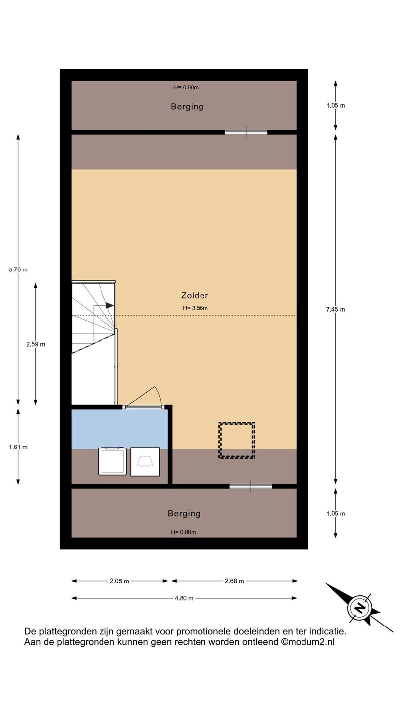 Open ruimte met een dakraam aan de voorzijde van de woning. Deze verdieping biedt de mogelijkheid om in de toekomst extra slaapkamers te creëren. Op deze verdieping bevindt zich een technische ruimte waar de wasmachine aansluiting, warmte-terug-wininstallatie en de omvormer van de 9 zonnepanelen zich bevinden.