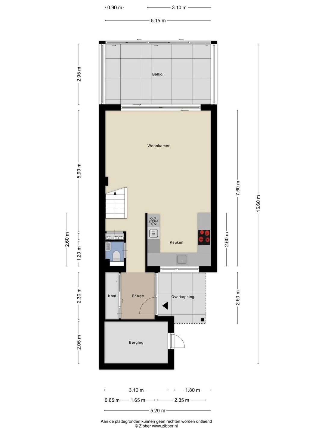 Zie de (interactieve) plattegronden voor de afmetingen van de woning.
