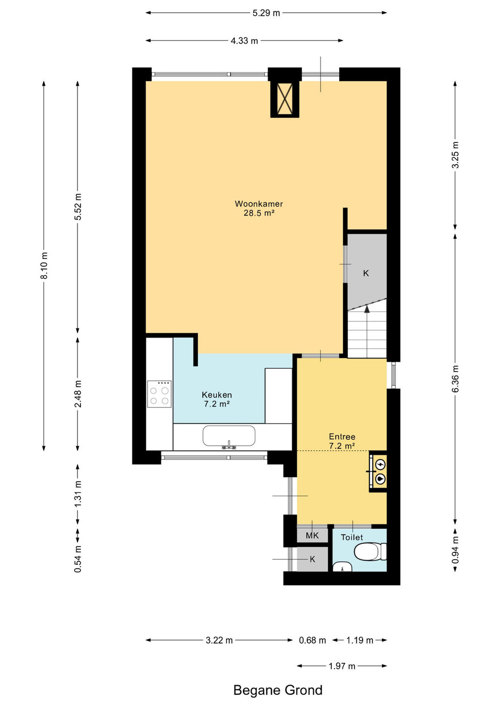 Via de voortuin komt u bij de entree, voorzien van een zijraam dat extra daglicht binnenlaat. In de hal bevinden zich de meterkast, het toilet en de trapopgang. De woonkamer is ruim opgezet, beschikt over een gezellige open haard, een praktische trapkast en een deur naar de zonnige achtertuin. De tegelvloer is onderhoudsvriendelijk en tijdloos.