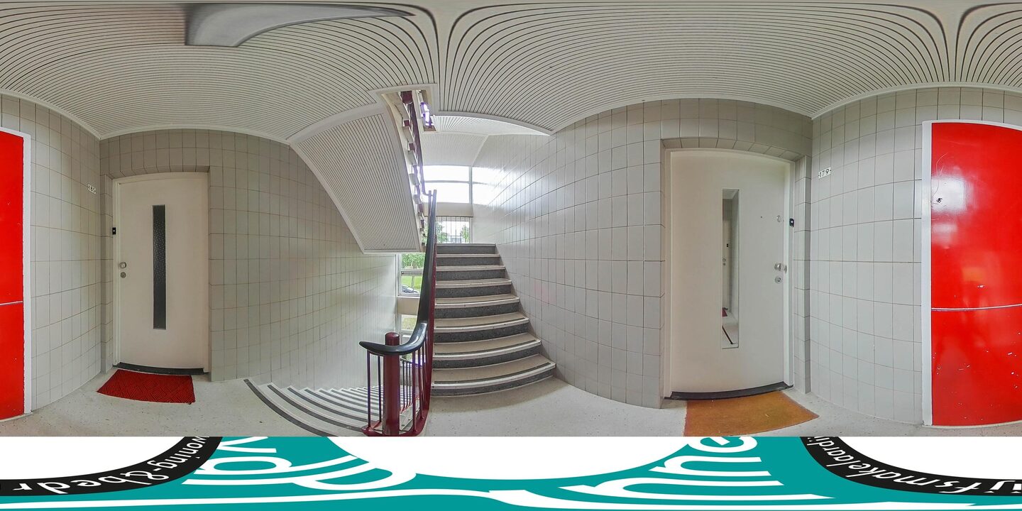 Een gezamenlijke entree met bellentableau en trappenhuis.