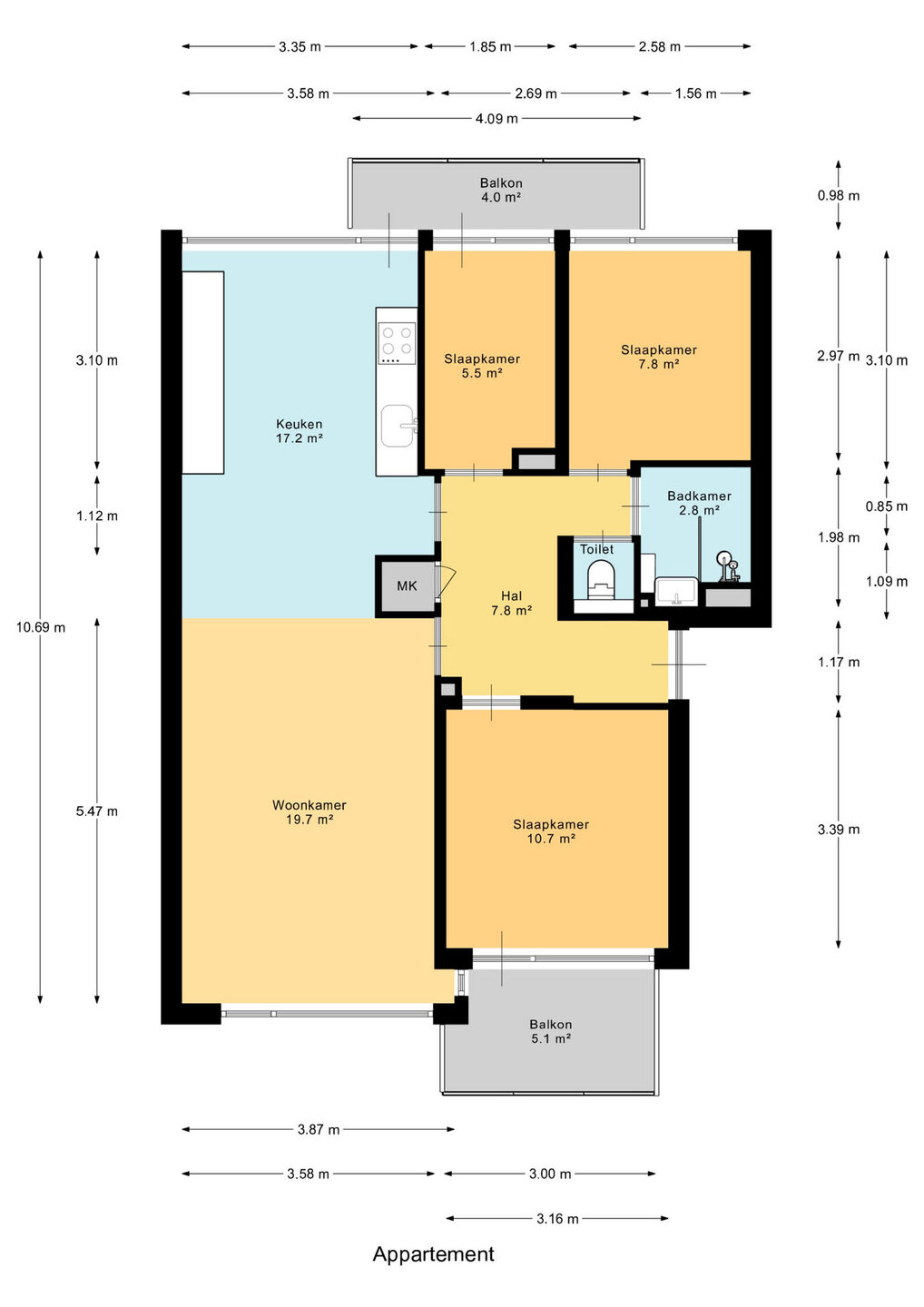 Zie de (interactieve) plattegronden voor de afmetingen van de woning.