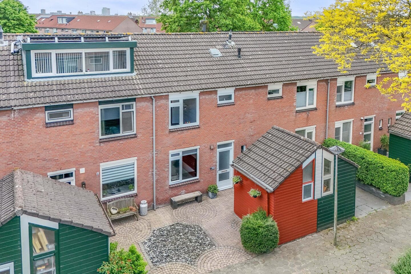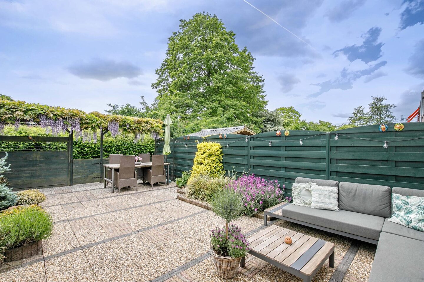Via de openslaande deur is de diepe achtertuin gelegen op het zuidoosten te bereiken. In de tuin zijn meerdere gezellige zitplekken. Verder is de tuin voorzien van een zonnescherm en een achterom.