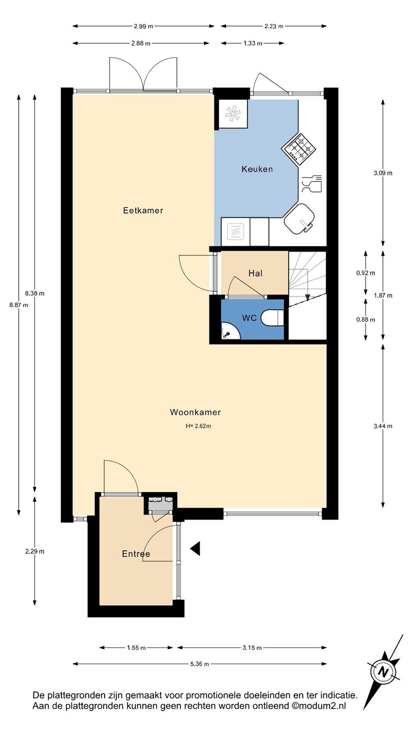 Zie de (interactieve) plattegronden voor de afmetingen van de woning.