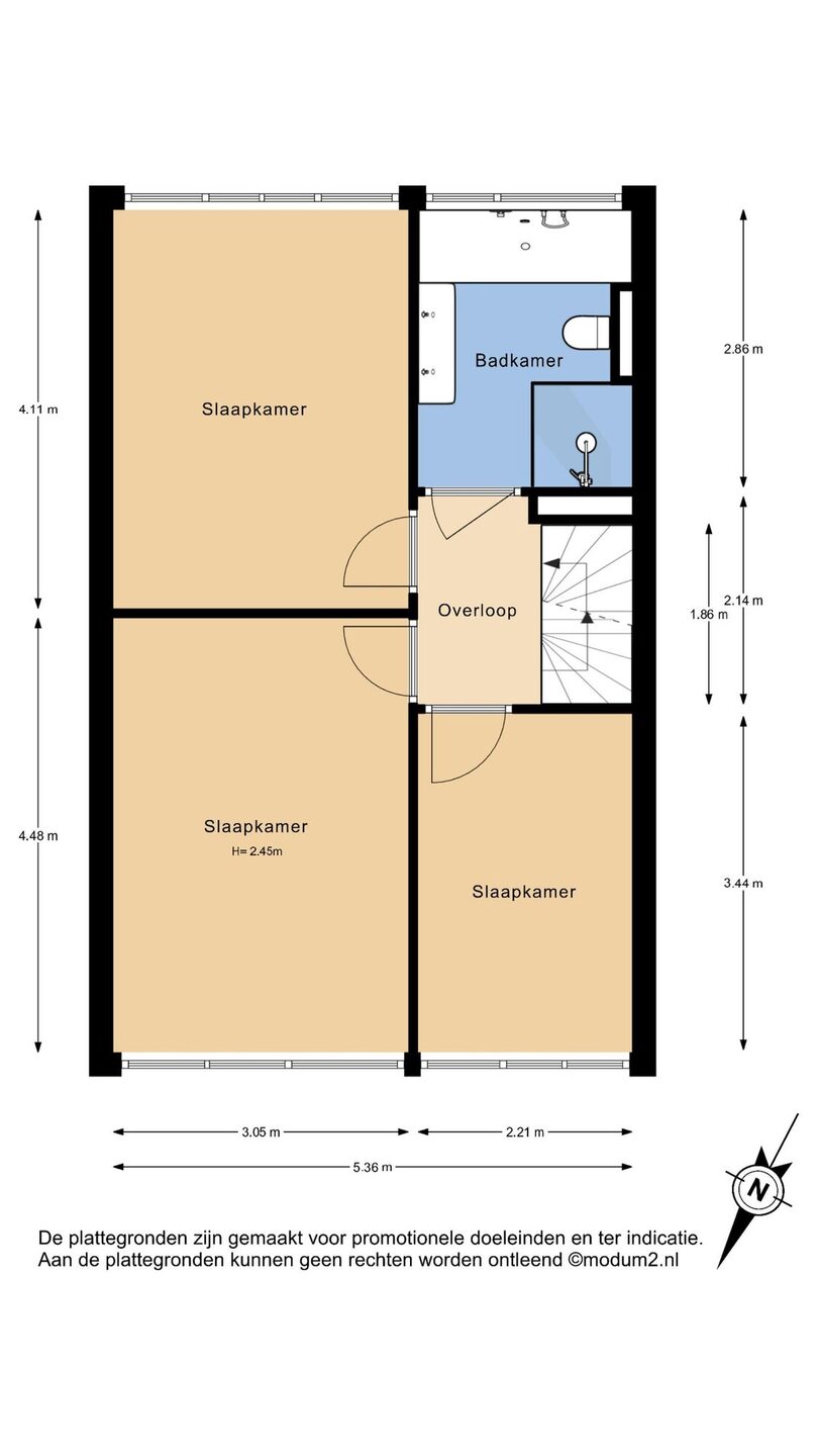 Overloop met toegang tot drie comfortabele slaapkamers, waarvan twee aan de voorzijde. Alle kamers zijn licht dankzij de grote raampartijen (deels met rolgordijnen) en zijn voorzien van kunststof kozijnen met HR++ glas (2021). De draai-kiepramen zijn uitgerust met horren en afsluitbaar met een sleutel. De overloop en alle kamers zijn voorzien van een nette laminaatvloer.