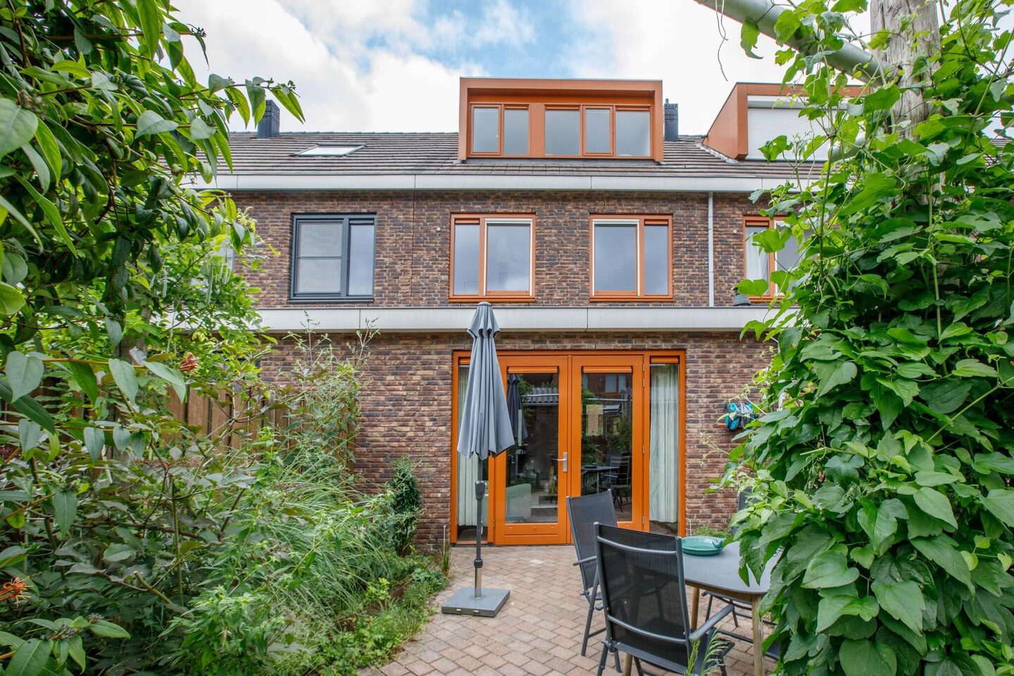 Via de dubbele openslaande deuren komt u in de diepe, groene achtertuin, gelegen op het noordoosten en circa 11 bij 5,5 meter groot. De tuin beschikt over een vrijstaande berging en een achterom