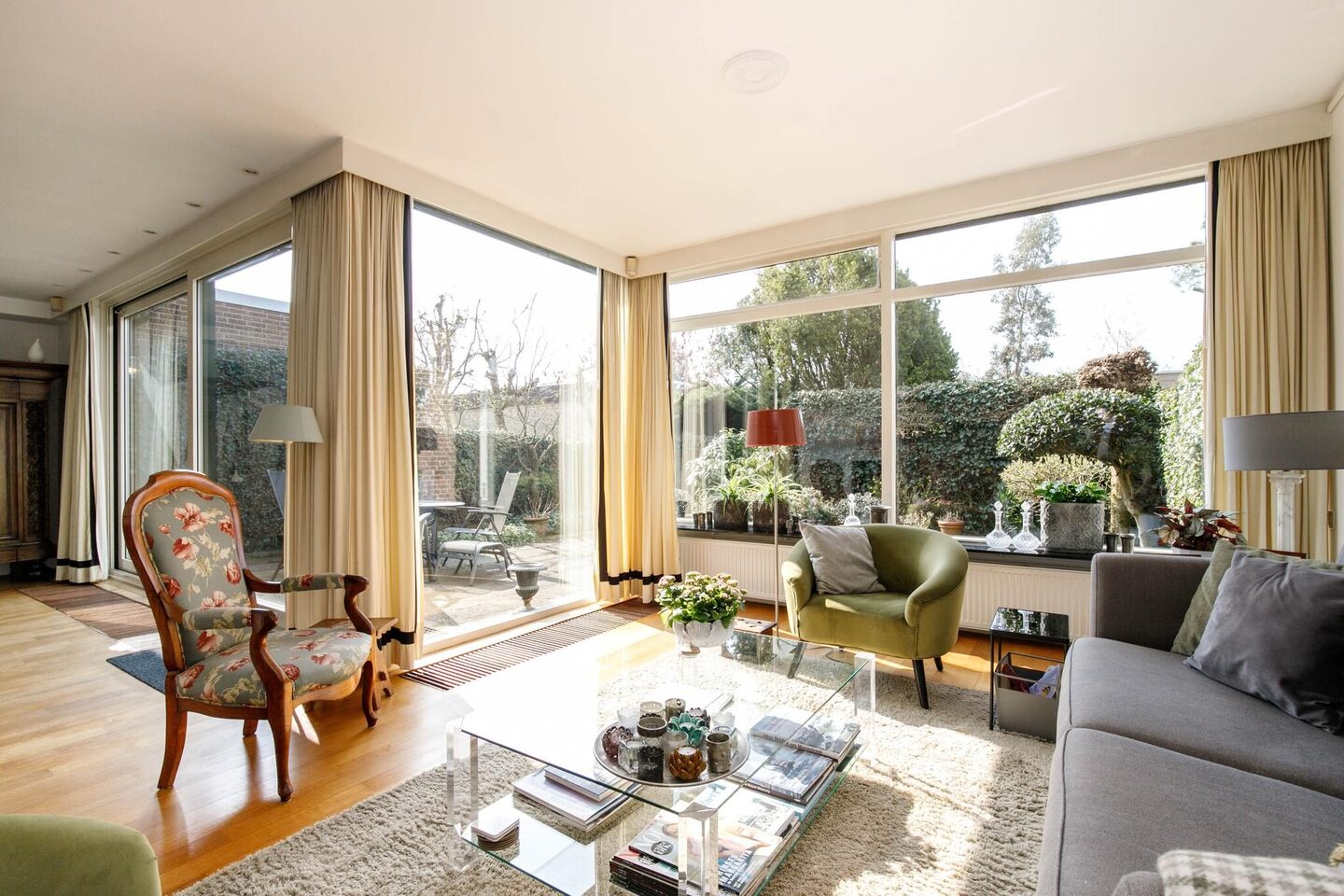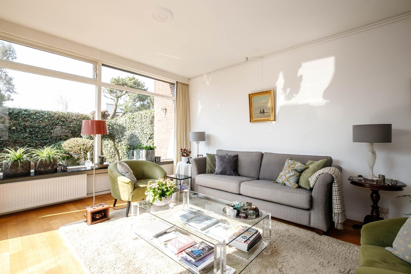 Via een in 2024 geplaatste kunststof schuifpui is de tuin te bereiken (9,50 diep en 9,70 breed) welke is voorzien van zonneschermen (en op de verdieping hangen screens).