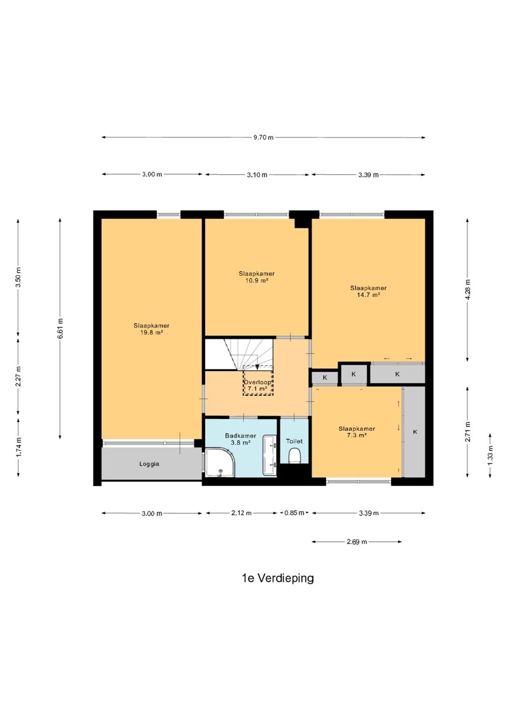 Zie de (interactieve) plattegronden voor de afmetingen van de woning.