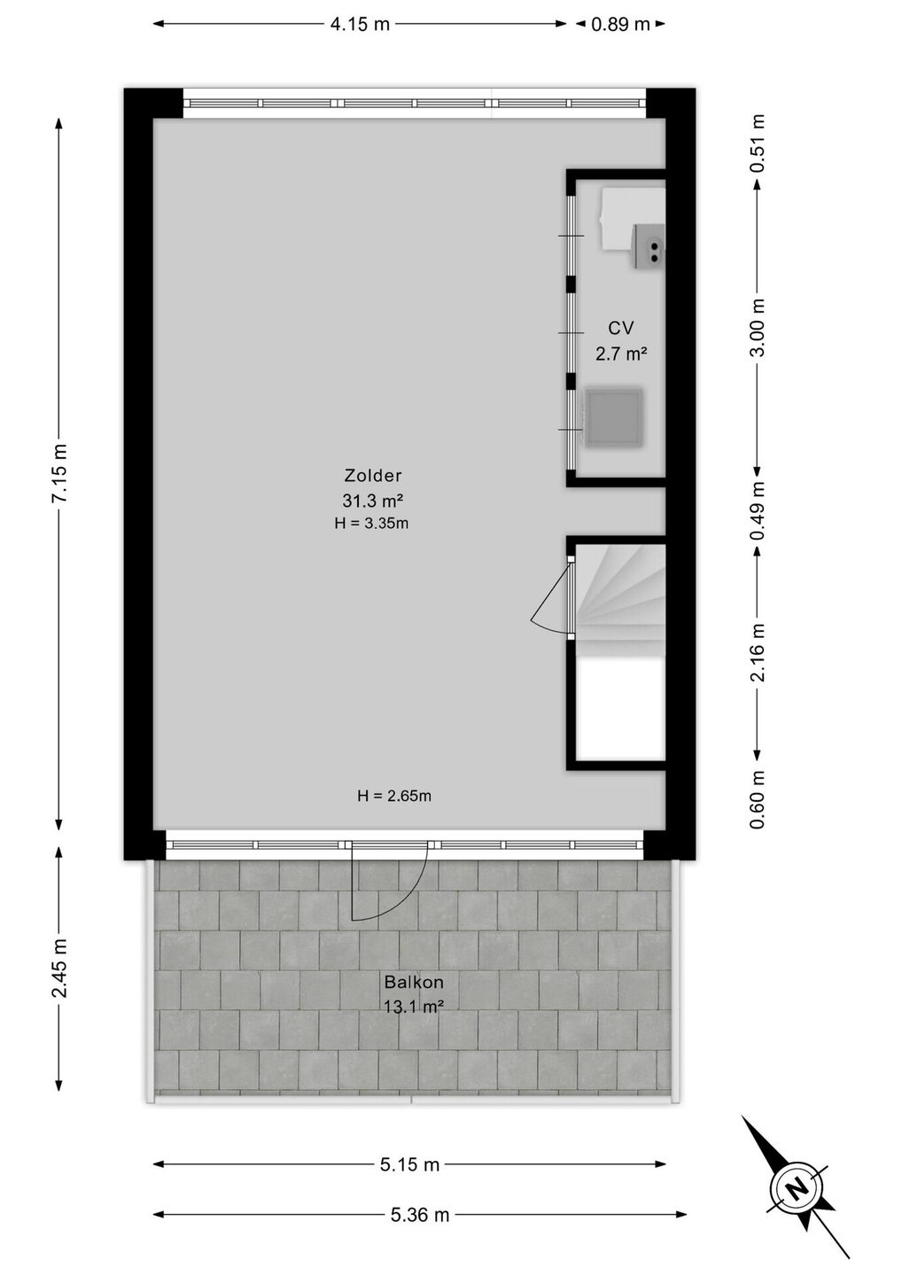 Middels de trap bereik je een ruime zolderverdieping met volop mogelijkheden. Hier creëer je eenvoudig één of zelfs twee extra slaapkamers. Ook vind je hier de opstelling voor wasmachine, CV-ketel en WTW-installatie, deze is netjes weggewerkt in een kast. Via de deur bereik je het zonnige dakterras (ca. 13 m²) op het zuidwesten. Op zolder zijn alle ramen voorzien van op maat gemaakte plissé rolgordijnen.