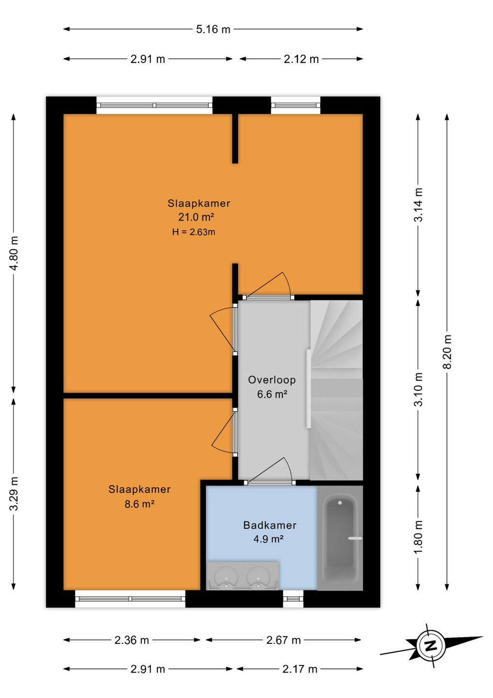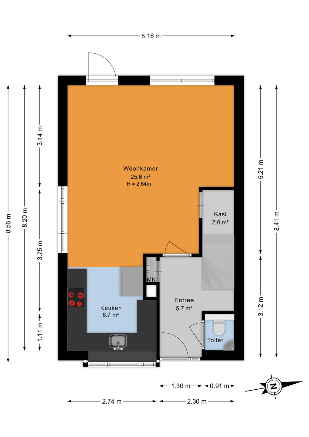 Zie de (interactieve) plattegronden voor de afmetingen van de woning.