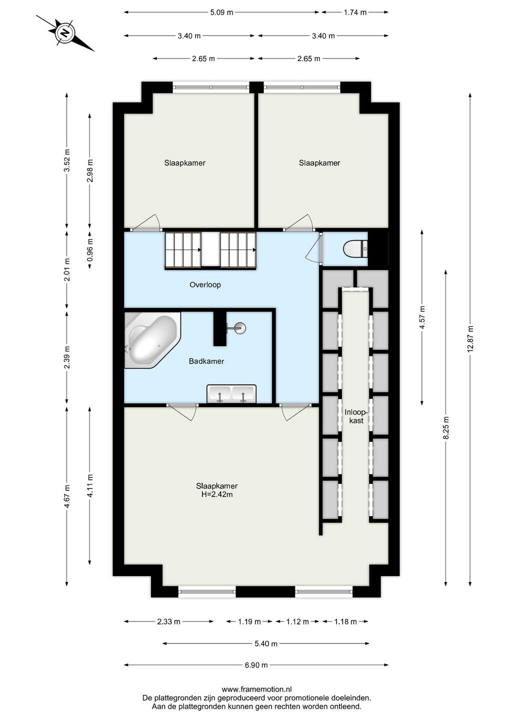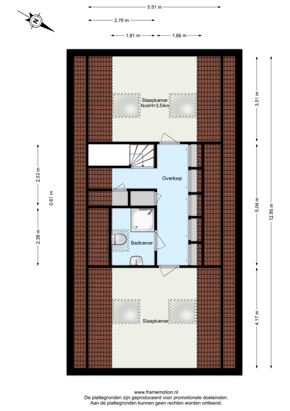 De tweede verdieping biedt nog eens twee slaapkamers onder het schuine dak, met een nokhoogte van circa 3,54 meter. Dankzij de dakramen zijn dit lichte en volwaardige kamers, geschikt als slaapkamer, werkruimte of hobbykamer. Op deze verdieping bevindt zich tevens een tweede badkamer en een ruime overloop.