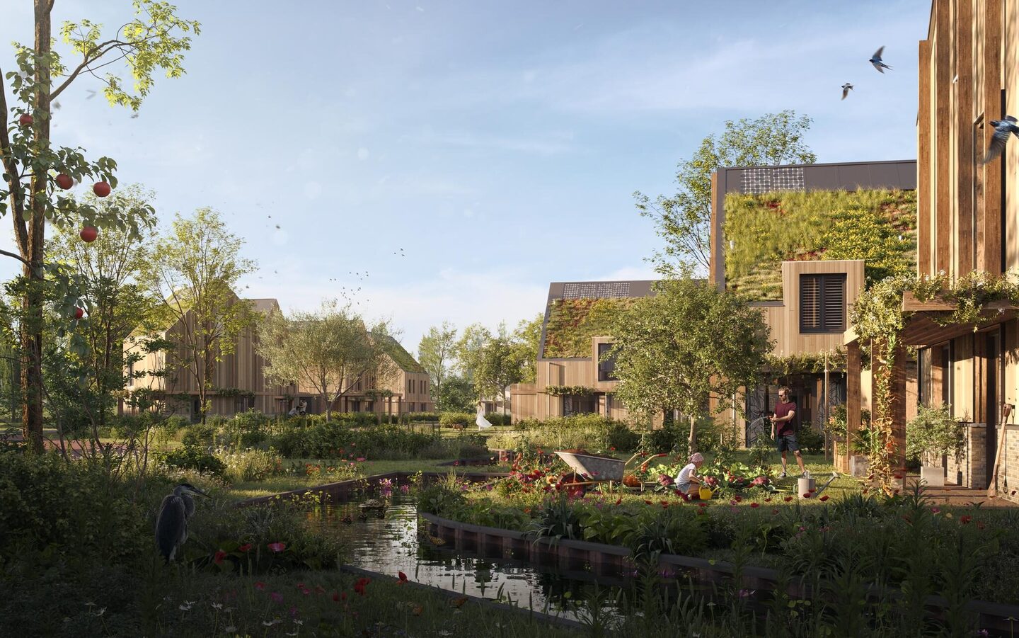 Het eerste deelplan is Woud, en dat is meteen een heel bijzondere. Woud biedt ruimte aan 29 houtbouwwoningen en 3 traditioneel gebouwde woningen met baksteen, bamboe of houten gevelbekleding.