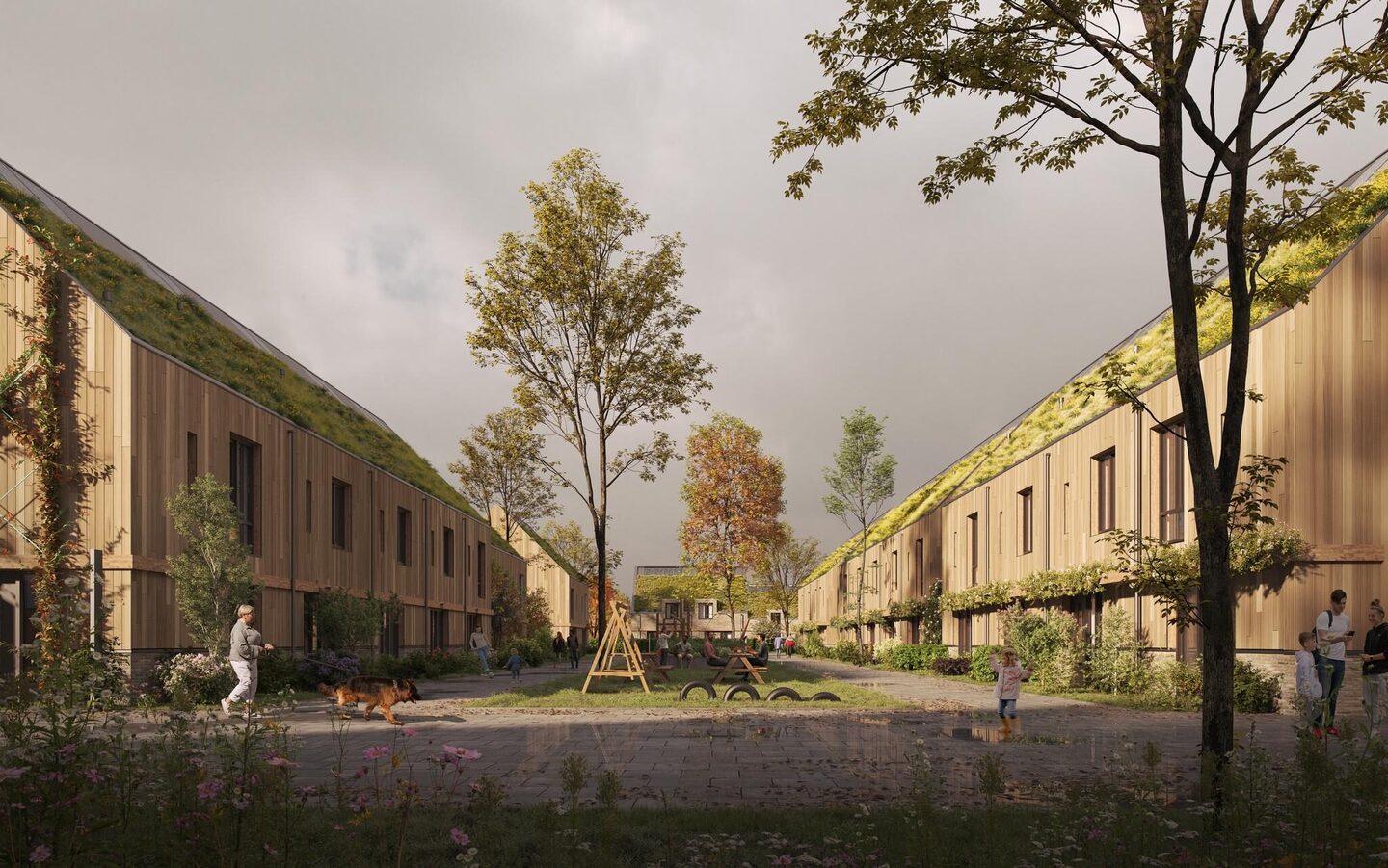 Het eerste deelplan is Woud, en dat is meteen een heel bijzondere. Woud biedt ruimte aan 29 houtbouwwoningen en 3 traditioneel gebouwde woningen met baksteen, bamboe of houten gevelbekleding.