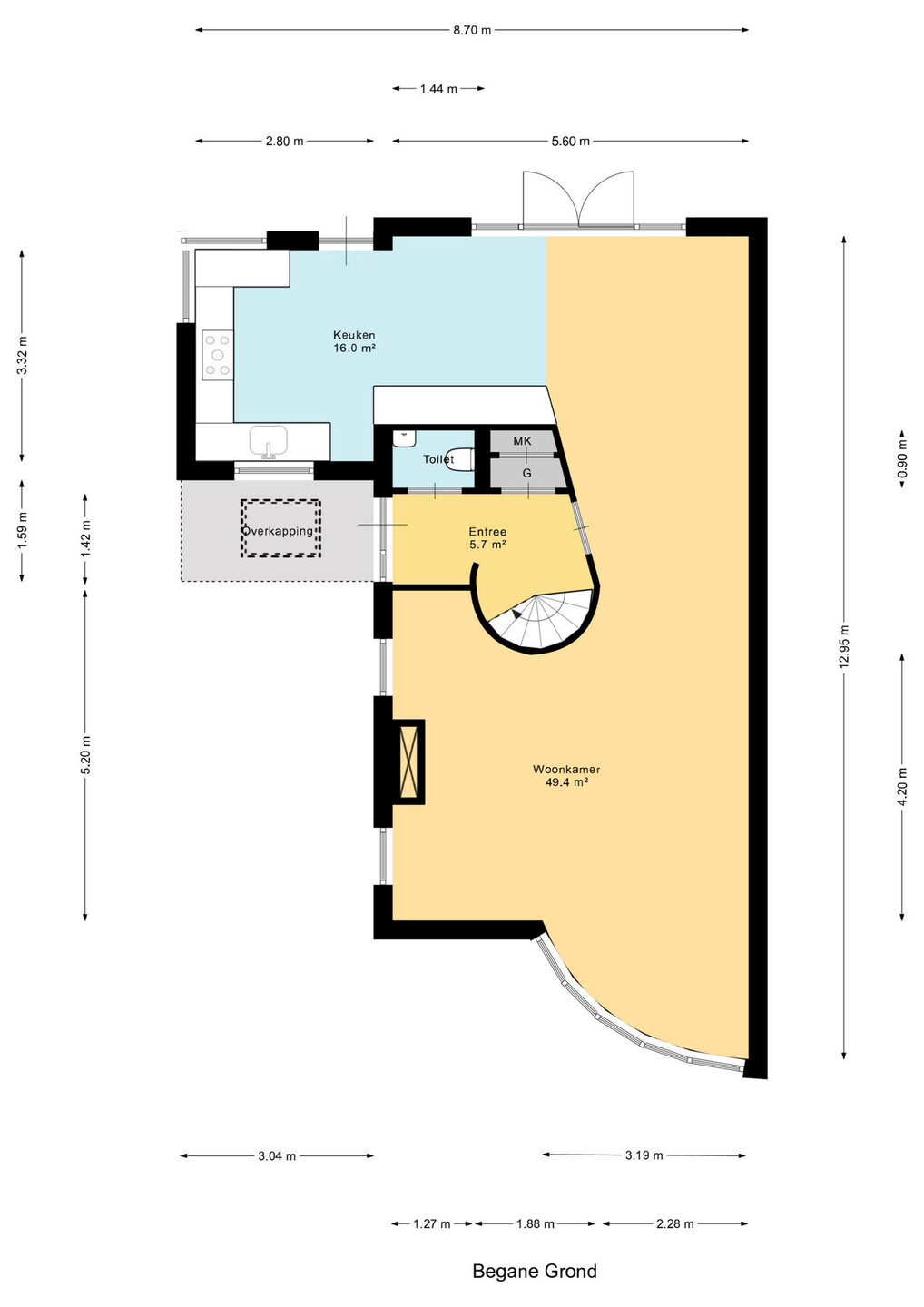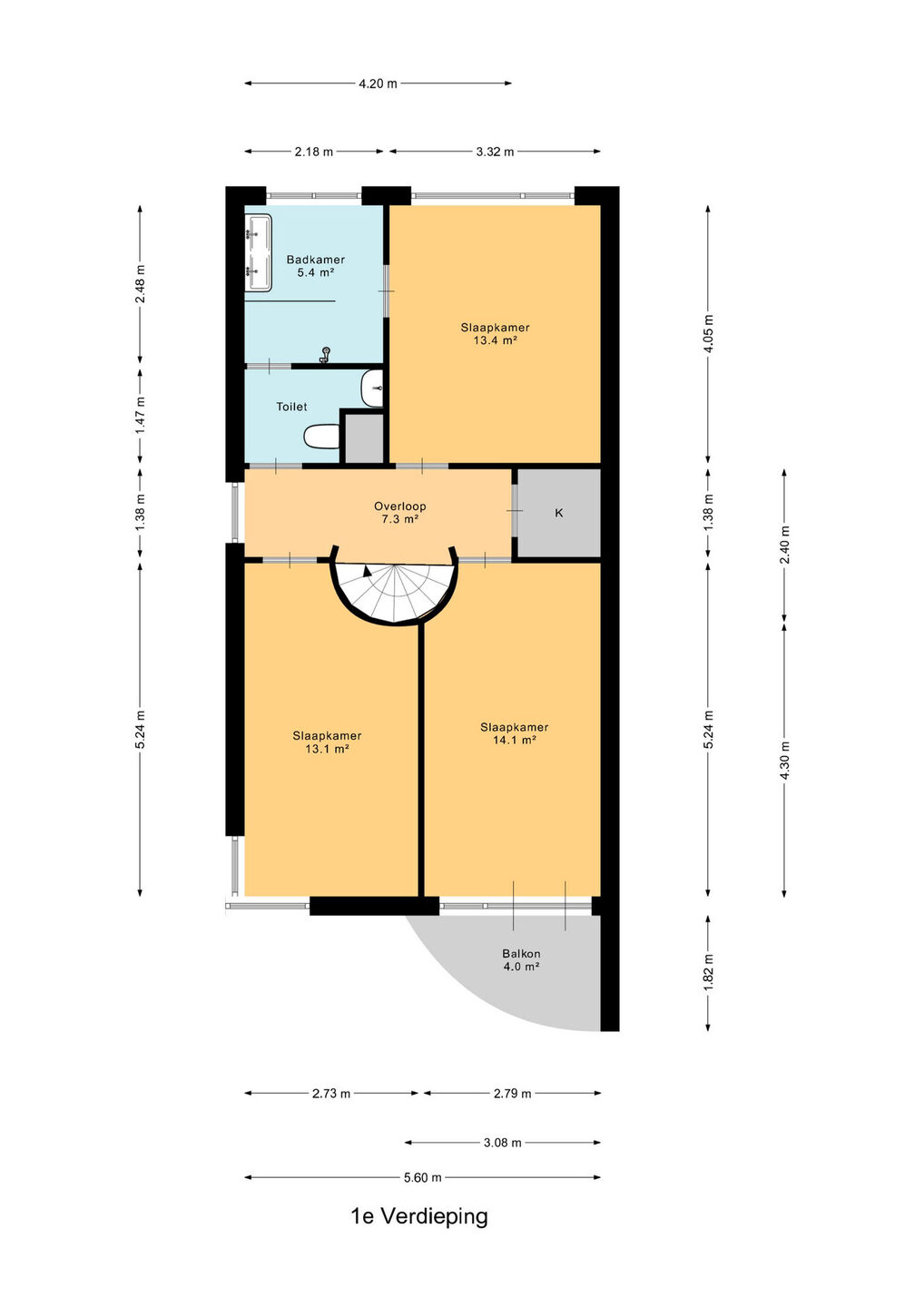Zie de (interactieve) plattegronden voor de afmetingen van de woning.