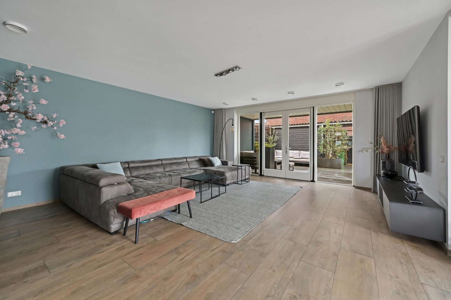 De woning is aan zowel de zij- als achterzijde uitgebouwd, wat zorgt voor een bijzonder royale leefruimte. De zijaanbouw biedt de perfecte plek voor een grote eettafel, terwijl de uitgebouwde woonkamer zorgt voor een lichte en comfortabele zithoek. Hierdoor ontstaat een heerlijke, open leefomgeving.