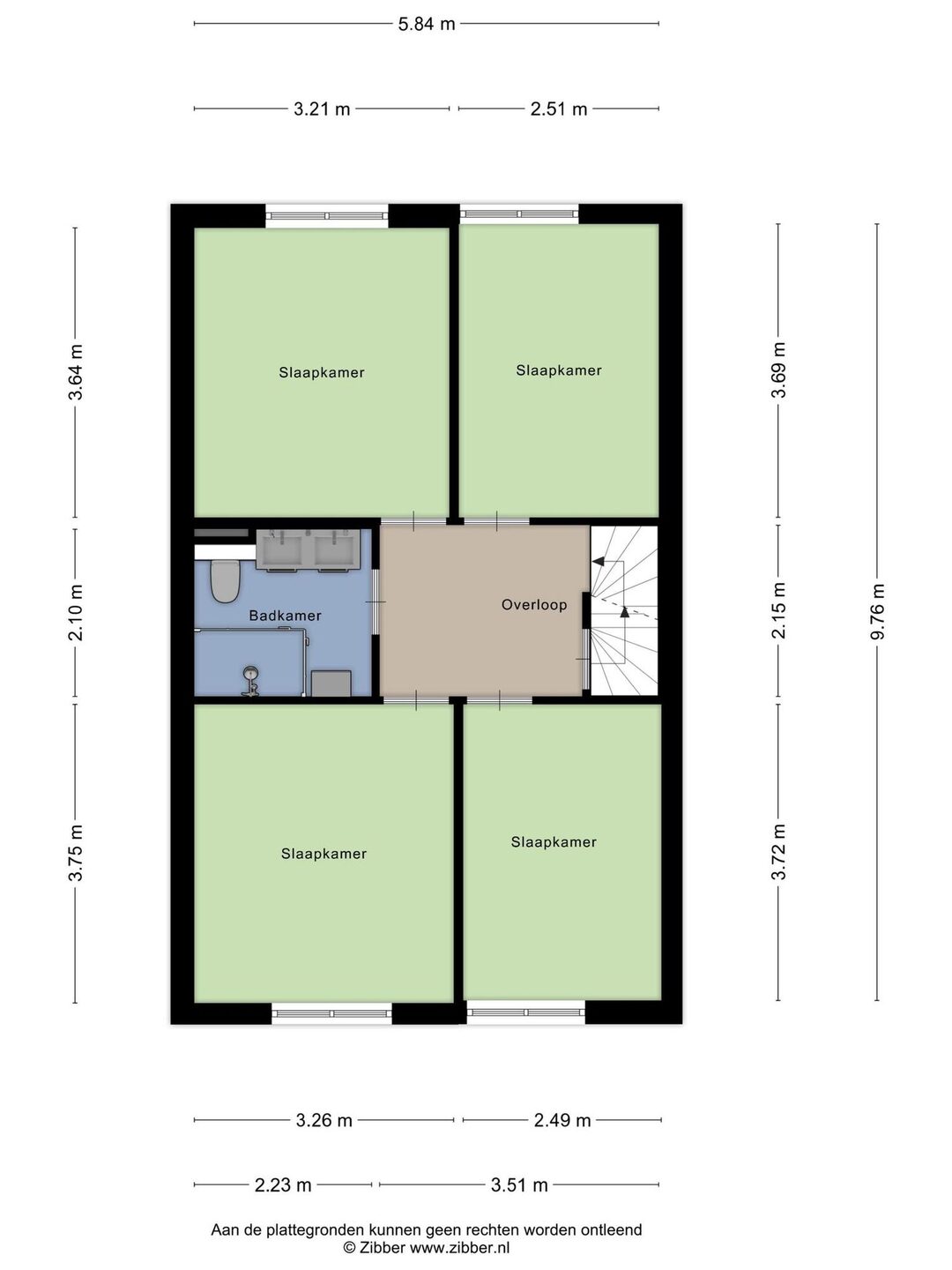 Overloop met toegang tot de badkamer en vier ruime slaapkamers, waarvan er twee zijn gelegen aan de voorzijde van de woning en twee aan de achterzijde van de woning.
