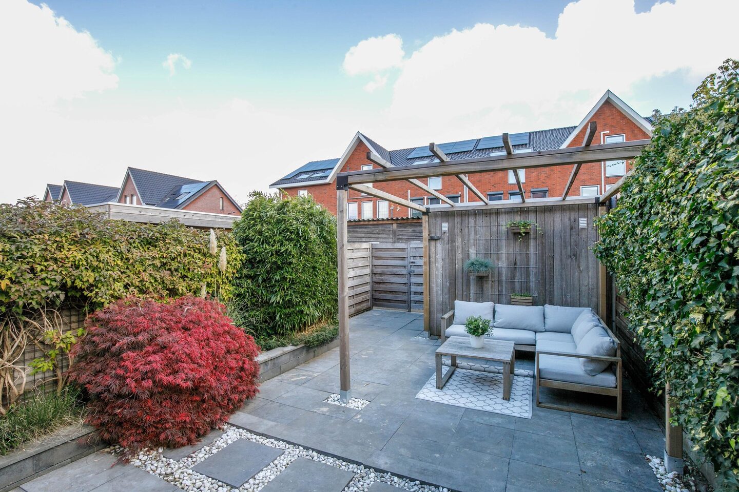 Via de openslaande deuren stap je de verzorgde achtertuin in. De tuin beschikt over een houten berging en een overkapping, en leent zich perfect voor lange zomerse avonden. Daarnaast is de tuin achterom bereikbaar via een af te sluiten poort.