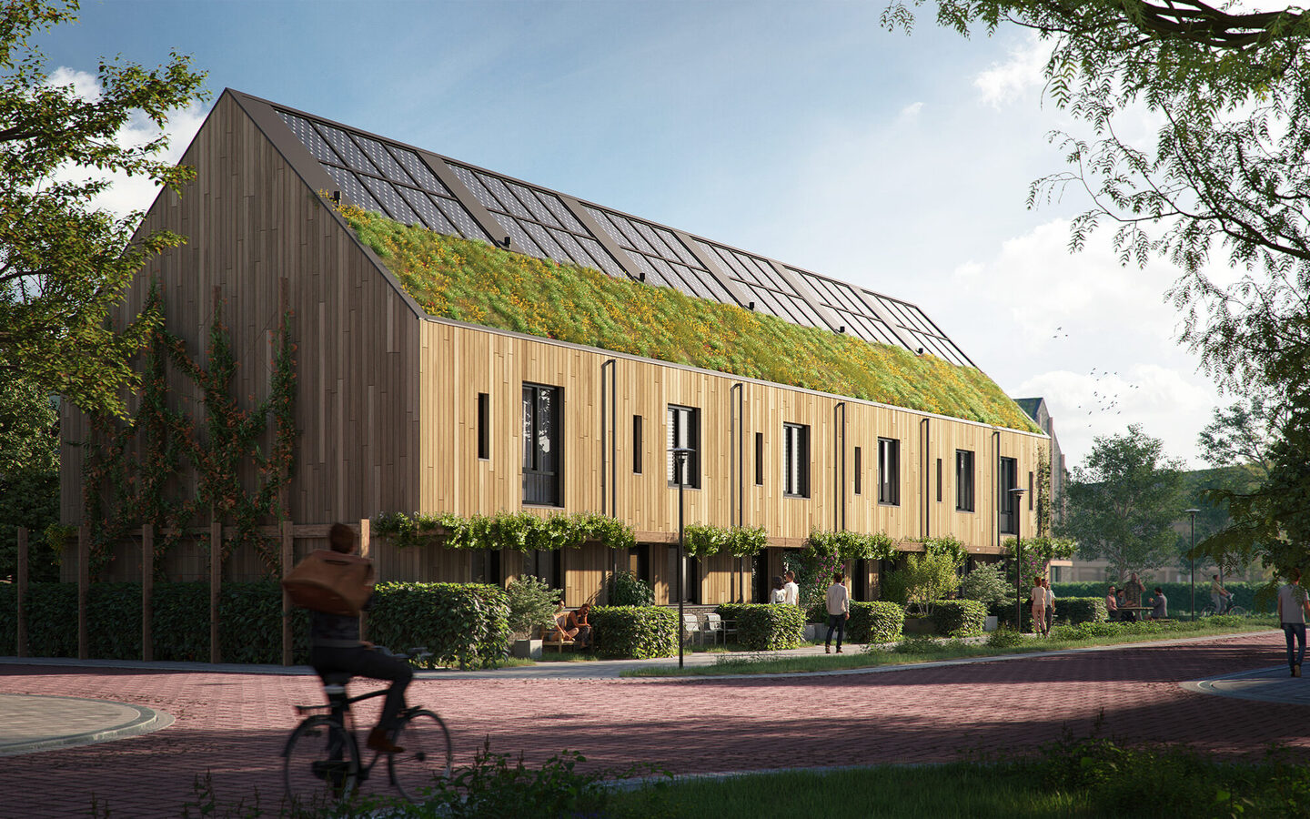 Het eerste deelplan is Woud, en dat is meteen een heel bijzondere. Woud biedt ruimte aan 29 houtbouwwoningen en 3 traditioneel gebouwde woningen met baksteen, bamboe of houten gevelbekleding.