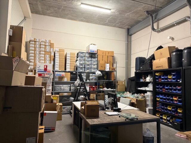 - Elektrisch bedienbare overheaddeur met een hoogte van 3,8 meter en breedte van 3,4 meter;