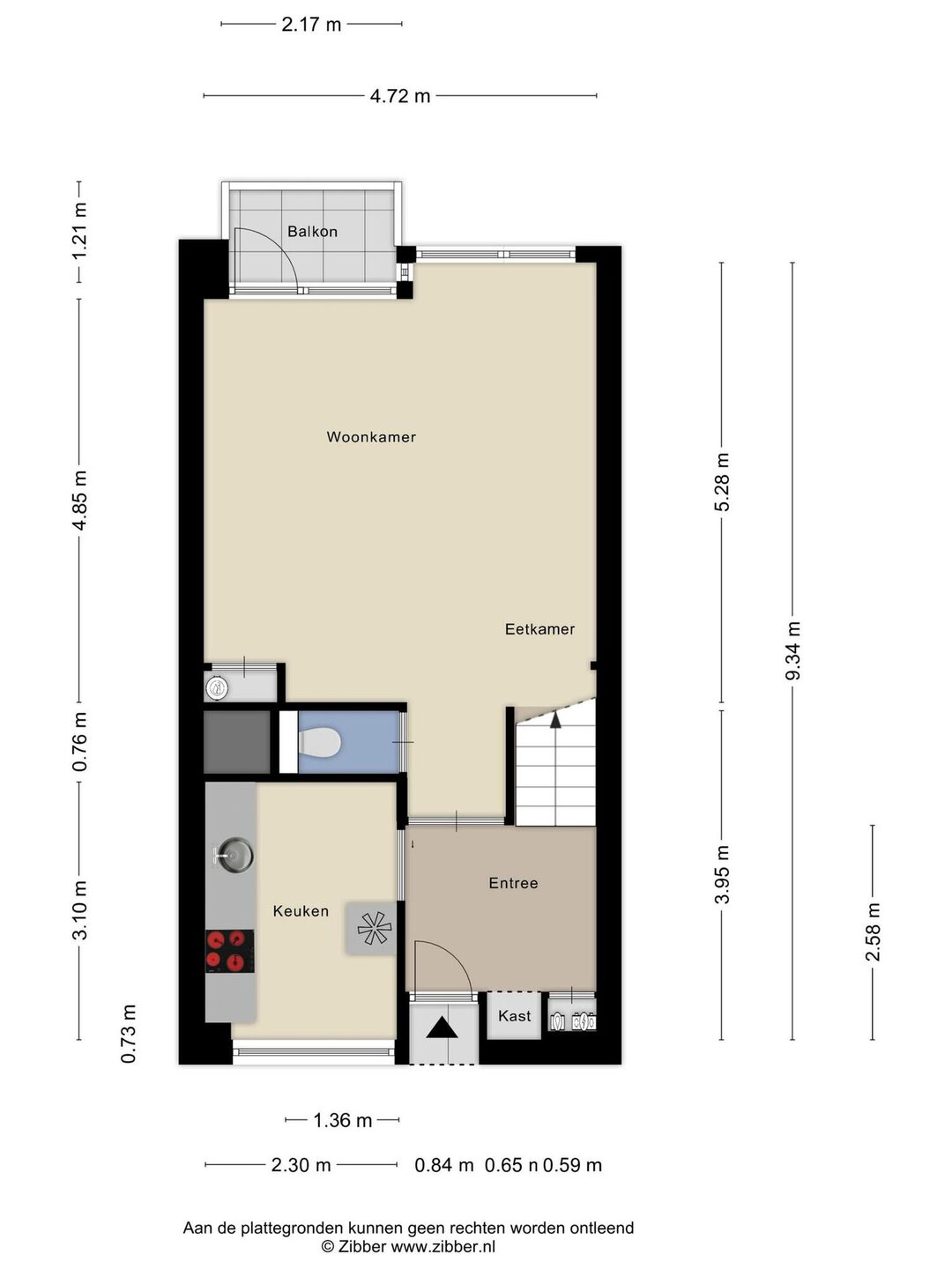 Zie de (interactieve) plattegronden voor de afmetingen van de woning.