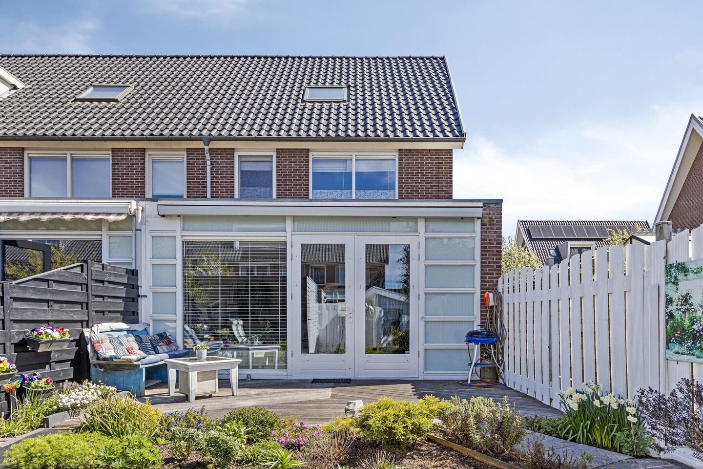 De tuin is fraai aangelegd en beschikt over twee bergingen achter in de tuin. Er is tevens een achterom aanwezig.