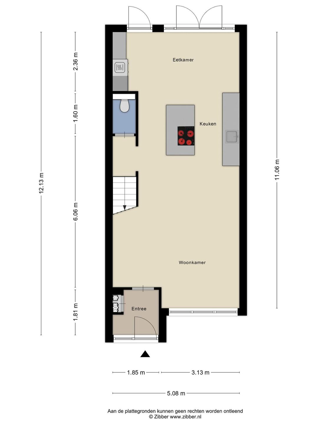 Naast de keuken bevinden zich het toilet en de trap naar de eerste verdieping.