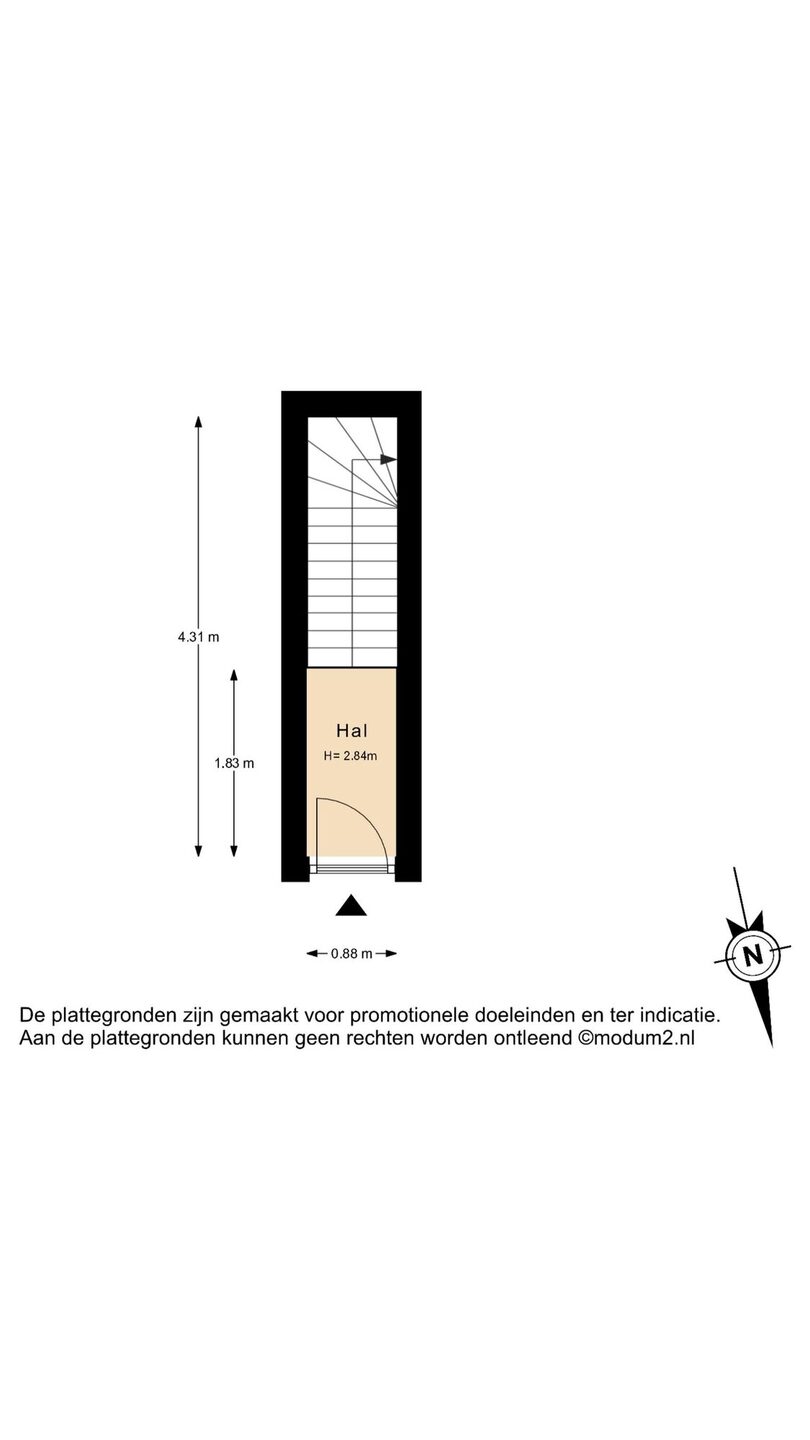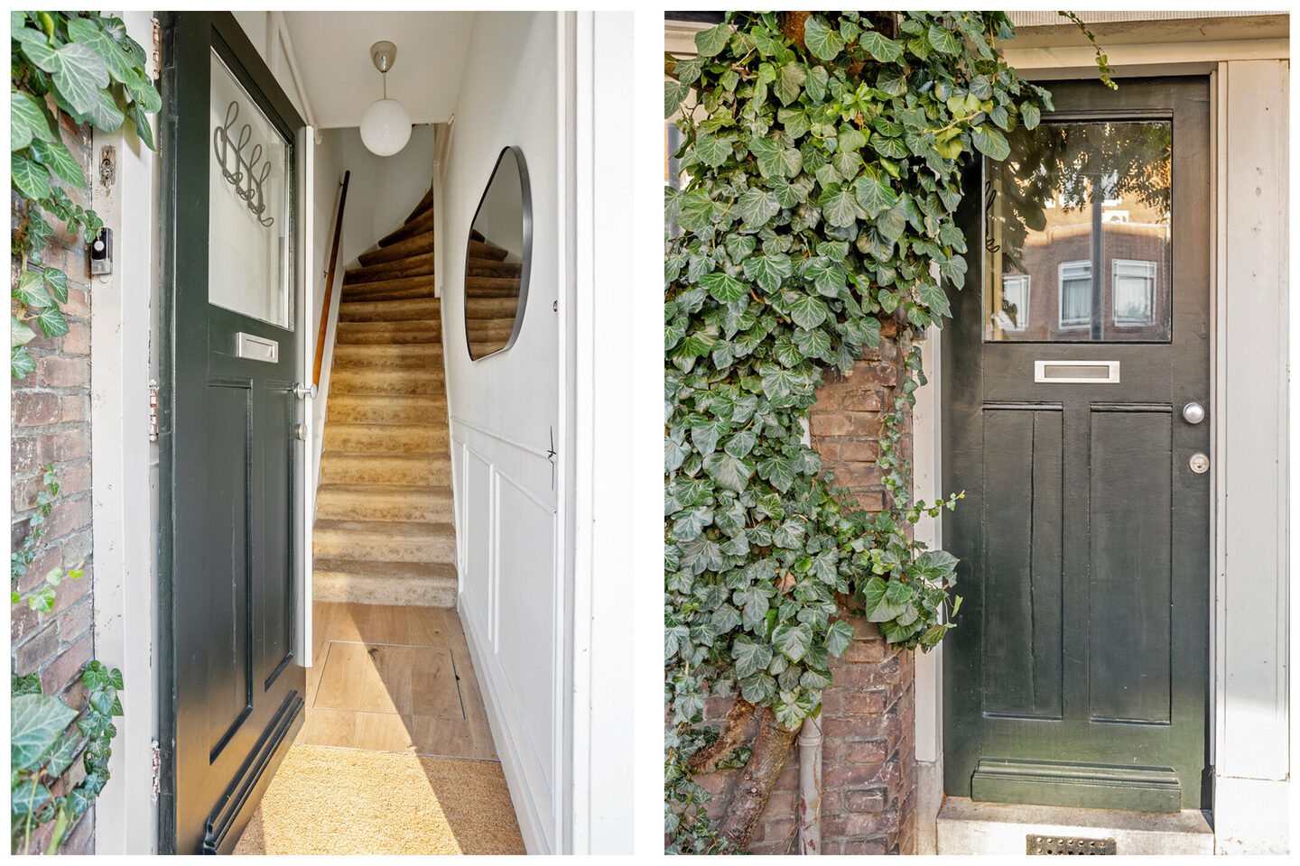 De woning maakt deel uit van een charmant pand met twee appartementen en is bereikbaar via een privé voortuin. De entree biedt toegang tot de hal met de trapopgang naar de eerste verdieping.
