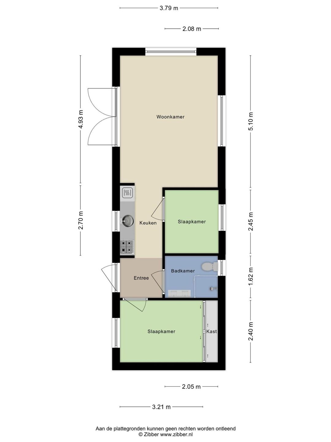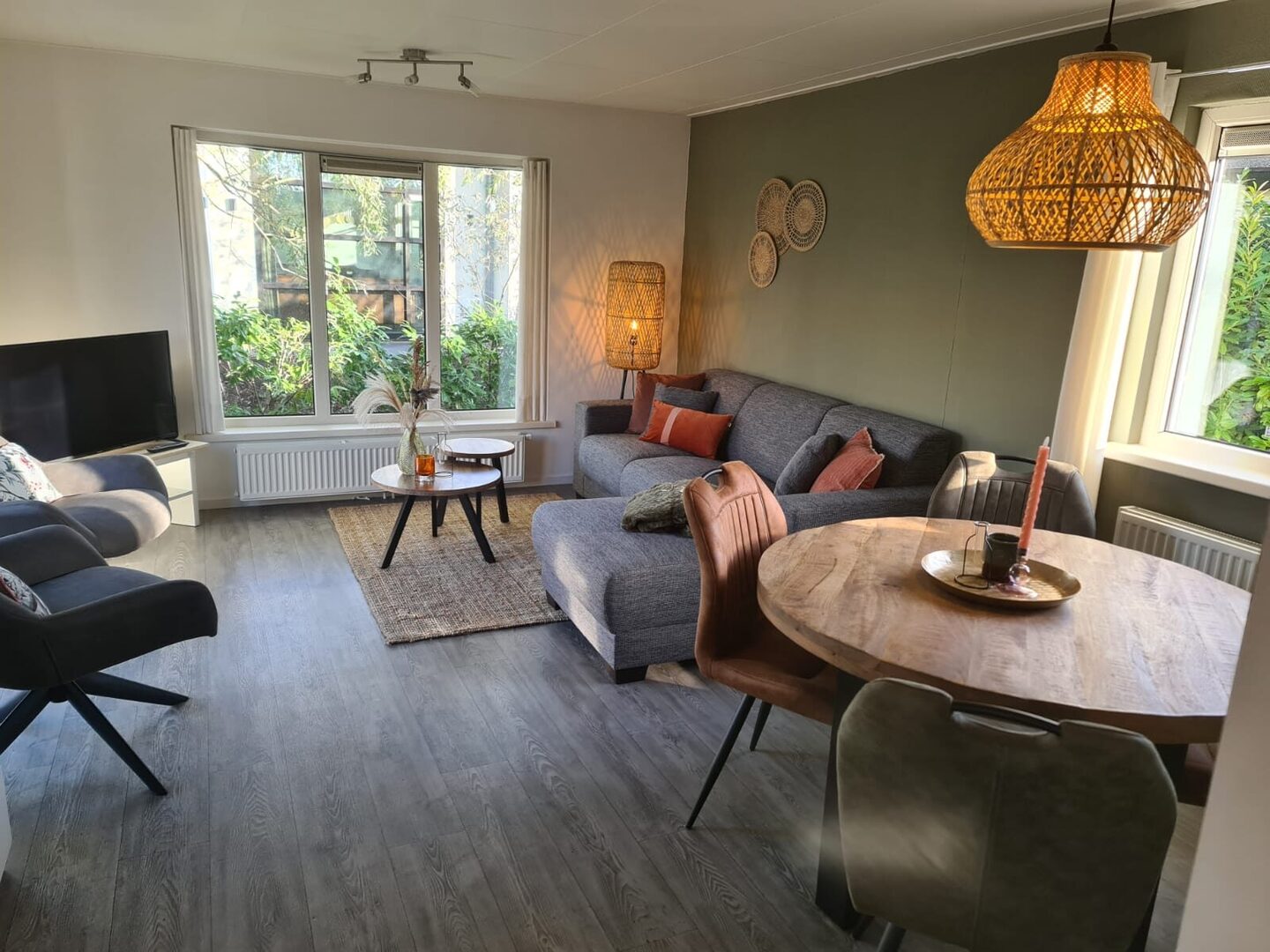 Via de entree aan de zijkant van de woning komt u binnen in de woonkamer met open keuken.