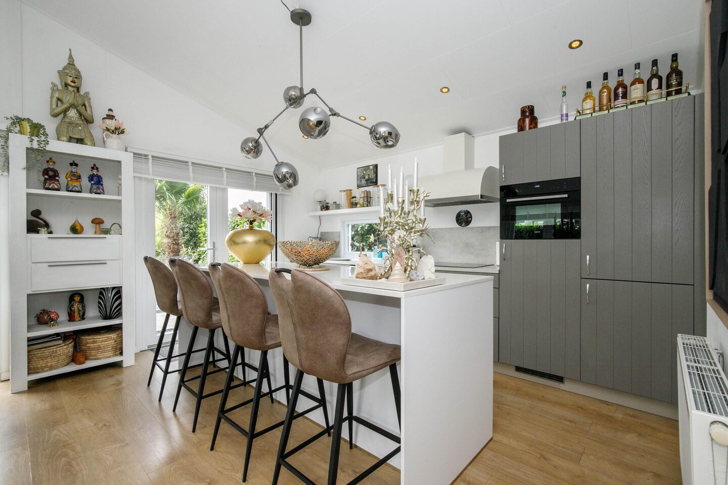 Elke dag vakantiegevoel ervaren? Dat kan in dit luxe, vrijwel nieuwe en onderhoudsvrije chalet van 66 m² op eigen grond. Het chalet ligt op een prachtig plekje in Parc de IJsselhoeve, direct aan het water. Het royale perceel is voorzien van een fraai aangelegde en uitstekend onderhouden tuin, waardoor je hier optimaal kunt genieten van rust en natuur. De lichte woonkamer heeft mooie grote raampartijen die zorgen voor een ruimtelijke en open uitstraling, terwijl de hoge nok het gevoel van ruimte nog verder versterkt. De moderne keuken is volledig uitgerust met alle gemakken en beschikt over een gezellige bar met plaats voor vier barkrukken.