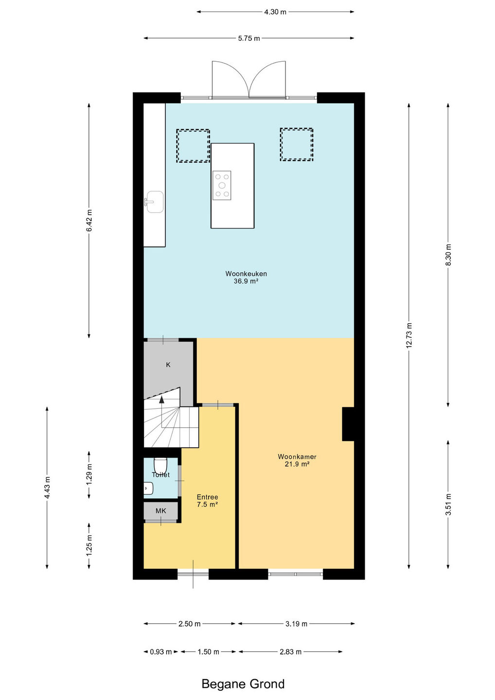 Zie de (interactieve) plattegronden voor de afmetingen van de woning.