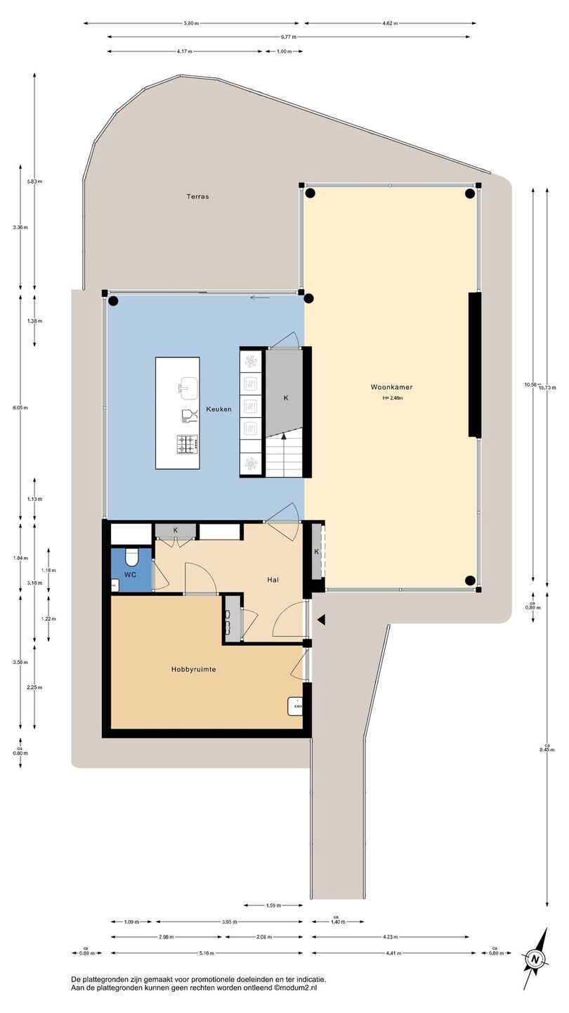 Zie de (interactieve) plattegronden voor de afmetingen van de woning.