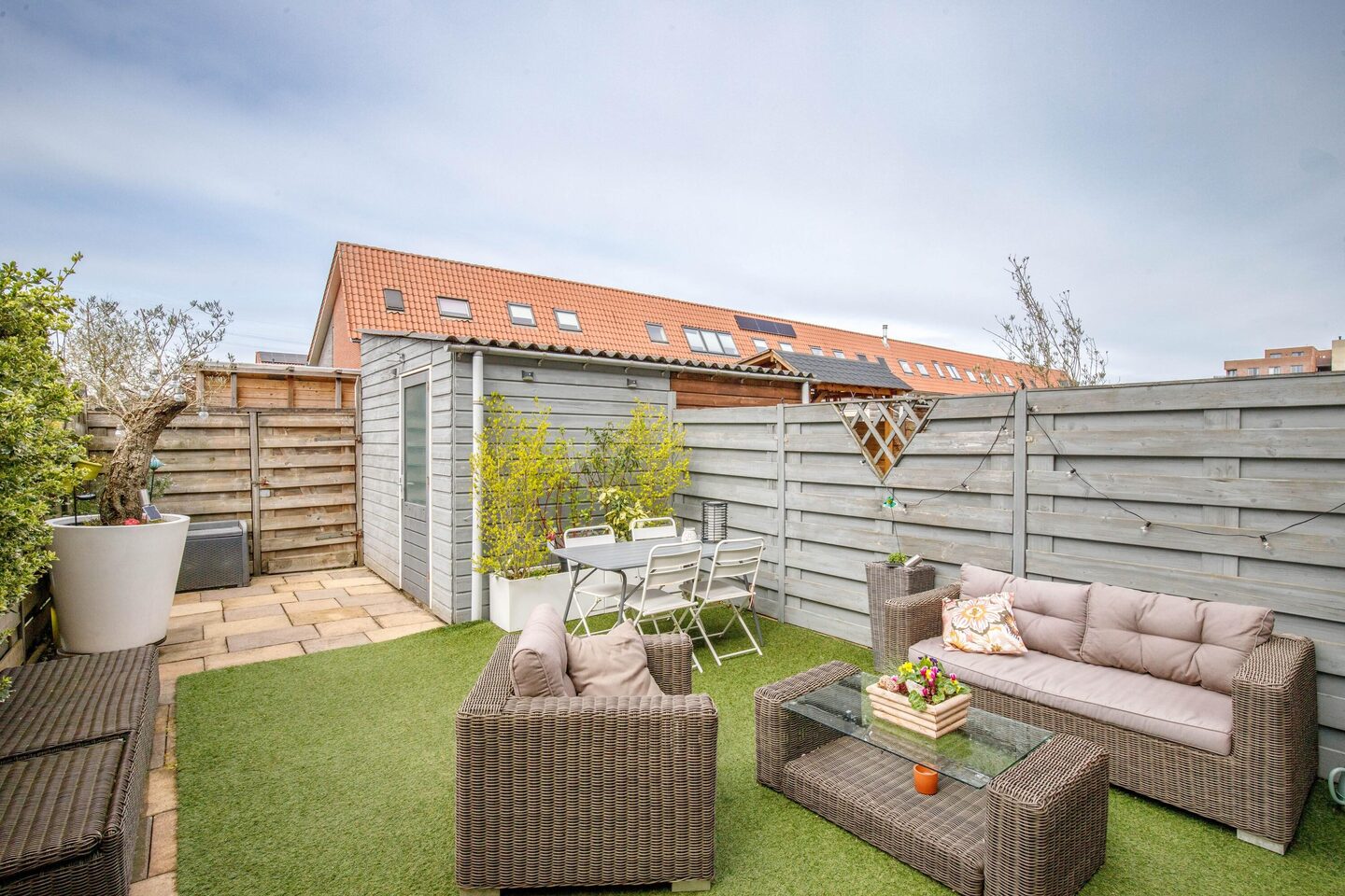 De diepe achtertuin is gelegen op het westen. Hier geniet je van de middag- en avondzon.
