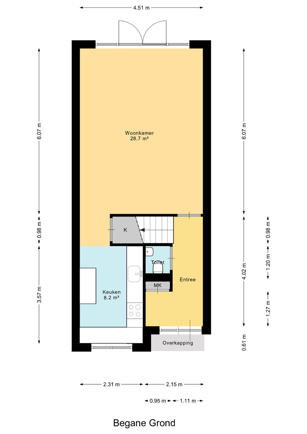 Entree, hal met meterkast en waterontharder, staand toilet met fonteintje en de vaste trap naar de eerste verdieping. Vanuit de hal bereik je de lichte woonkamer. De lichte woonkamer beschikt over dubbele deuren naar de achtertuin, wat zorgt voor een prettige verbinding tussen binnen en buiten. Aan de achterzijde van de woning staat geen woning, ten opzichte van de rest van de woningen in deze rij, waardoor er extra veel licht binnenkomt. Aan de voorzijde van de woning bevindt zich de open keuken, uitgevoerd in een moderne stijl en voorzien van diverse inbouwapparatuur, waaronder een vaatwasser, koel-vriescombinatie, oven, magnetron met stoomfunctie, keramische kookplaat en een ingebouwde afzuigkap.