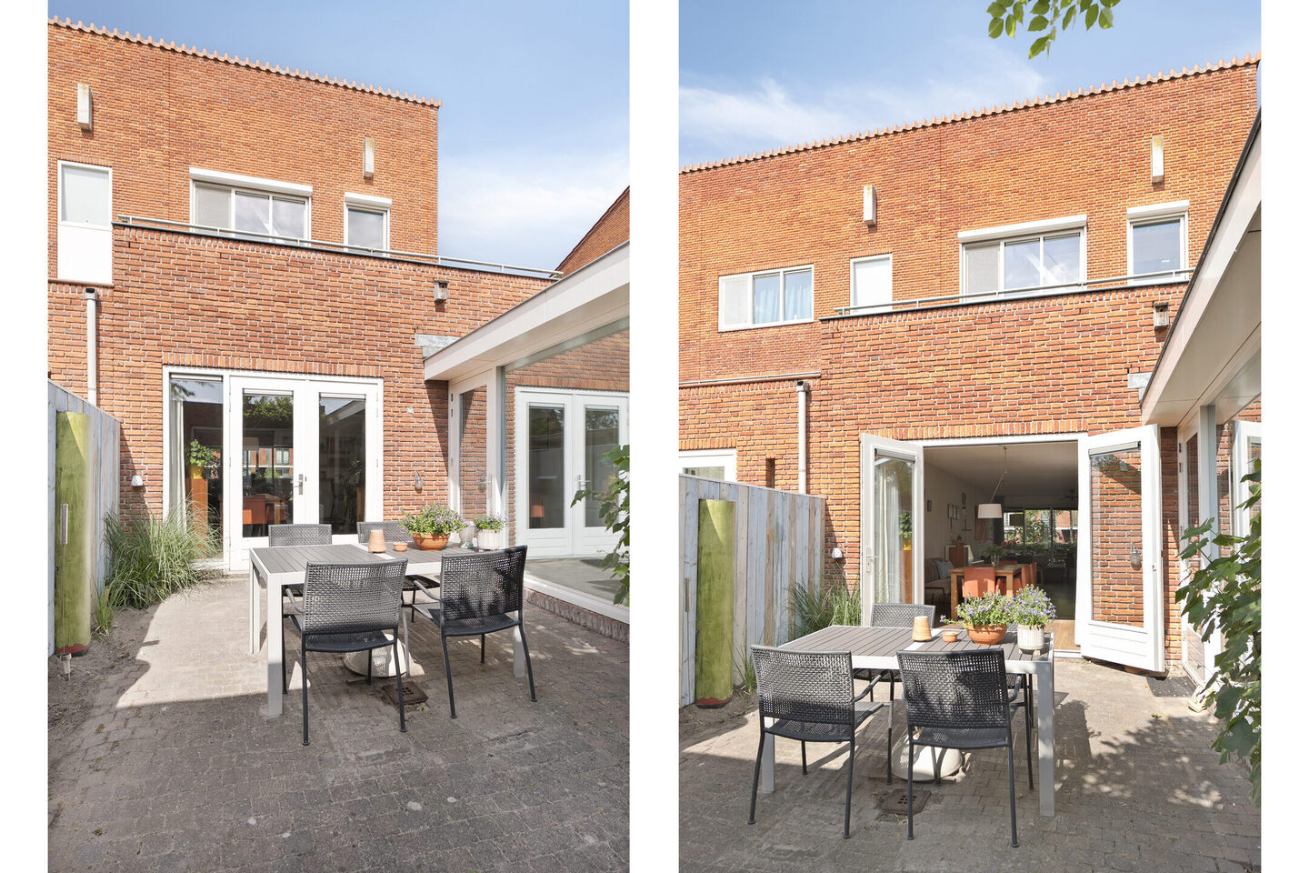 De achtertuin is gelegen op het oosten en via meerdere deuren vanuit de woning bereikbaar.